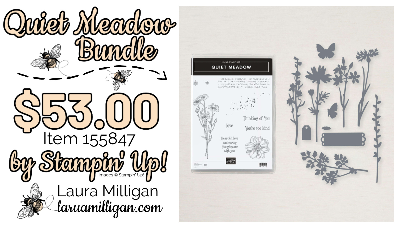 You will need the Quiet Meadow Bundle to make these cards. You can add the bundle to your class for the catalog price of $53 – I pay the tax and shipping, so this is a saving for you!