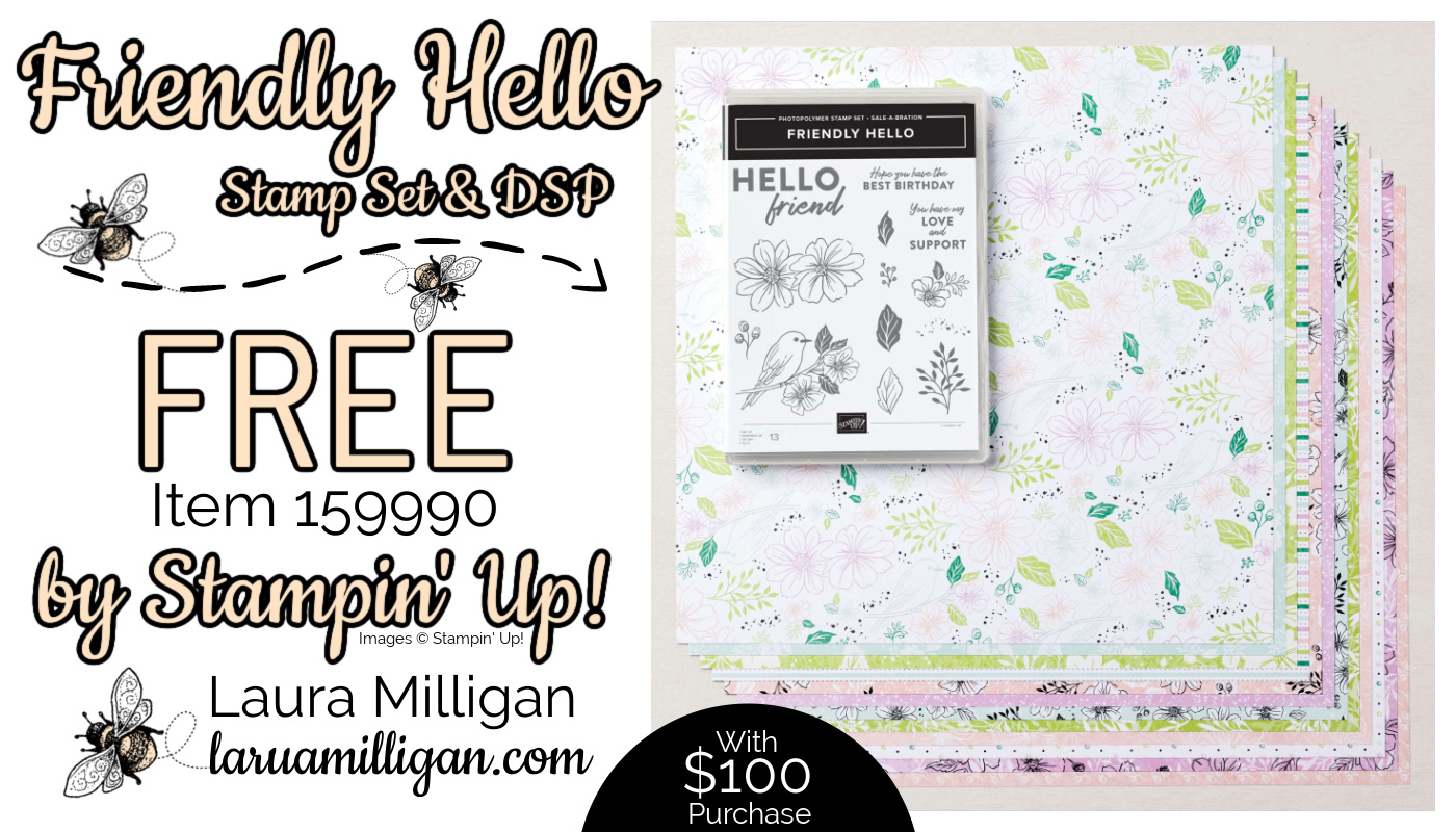 Today’s card introduces you to the Friendly Hello Bundle that can be earned for FREE with a qualifying purchase during Sale-a-Bration, January – February 28, 20221