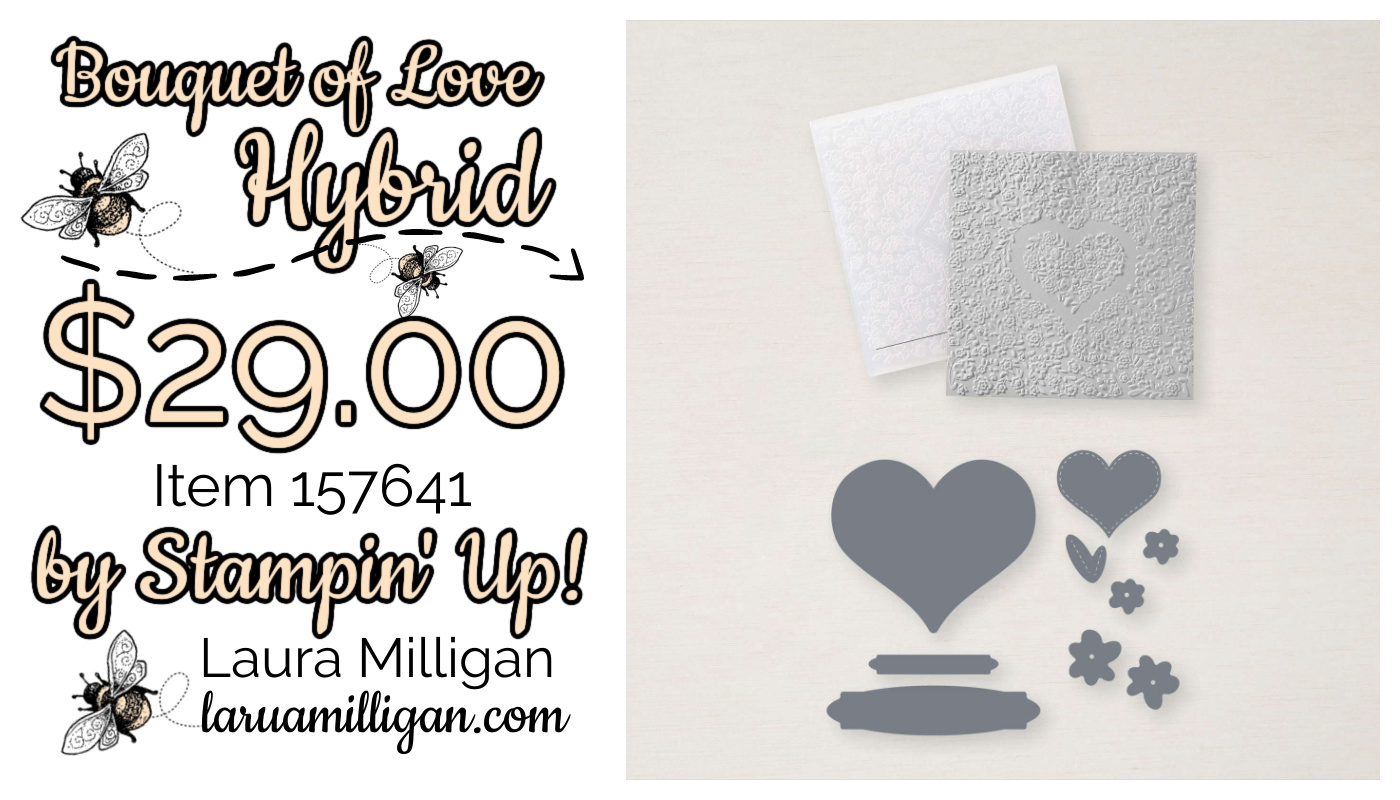 This simple NO STAMPS Valentine’s Card uses heart punches and dies. The Real Red heart in the center is from the all-new Bouquet of Love Hybrid Embossing Folder Set. You can buy it as a bundle with the coordinating stamp set (Love & Happiness Bundle | 157642) for $45.75 or purchase on its own (shown below). It is currently on LOW INVENTORY. So if you want it to create Valentine’s, snag it soon!