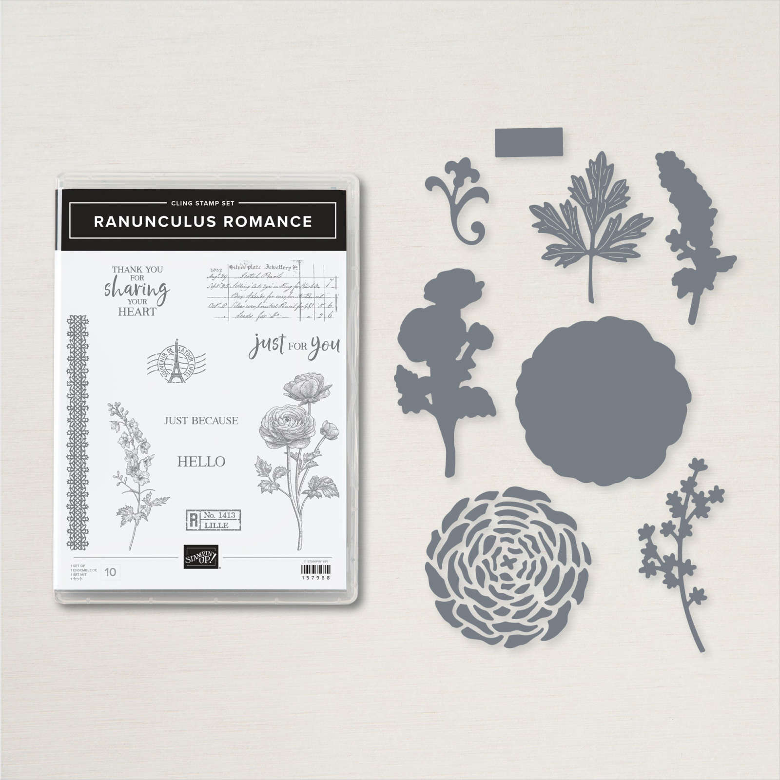 Today’s free tutorial is all about simplicity and I love this card. Collages always appeal to me and this set of neutral tones has a soft, yet earthy feel. The Ranunculus Romance Stamp Set is great on it’s own (simplistic) but if you want to step it up, buy the bundle and save 10% (over purchasing the stamp set and dies individually).
