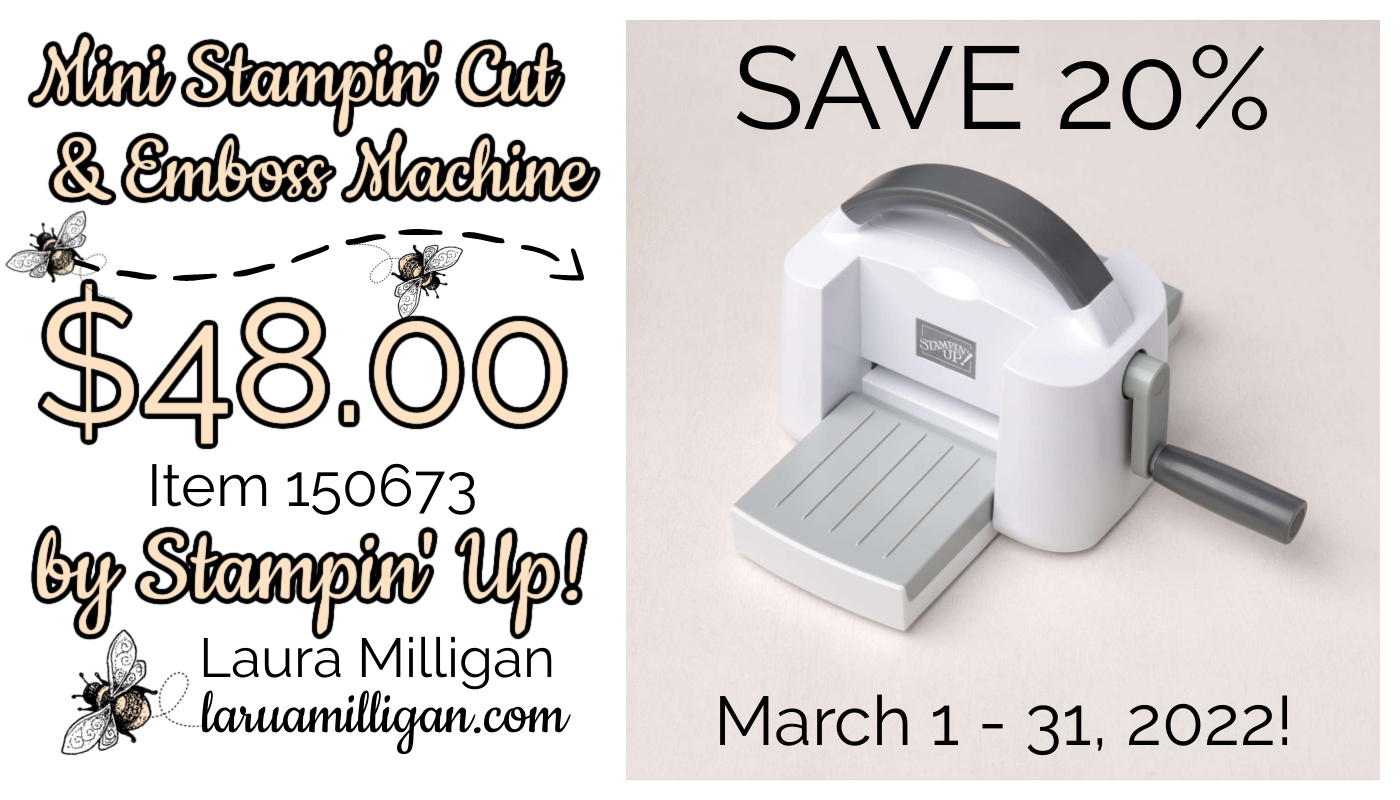 During the month of March, you can snag the Mini Stampin’ Cut & Emboss Machine at a 20% discount! This miniature machine is compatible with a large selection of Stampin’ Up! embossing folders and dies. Build your craft collection and combine the Mini Stampin’ Cut & Emboss Machine with any (or all!) of the select stamp-and-die bundles that are also available for 20% off during the month of March!