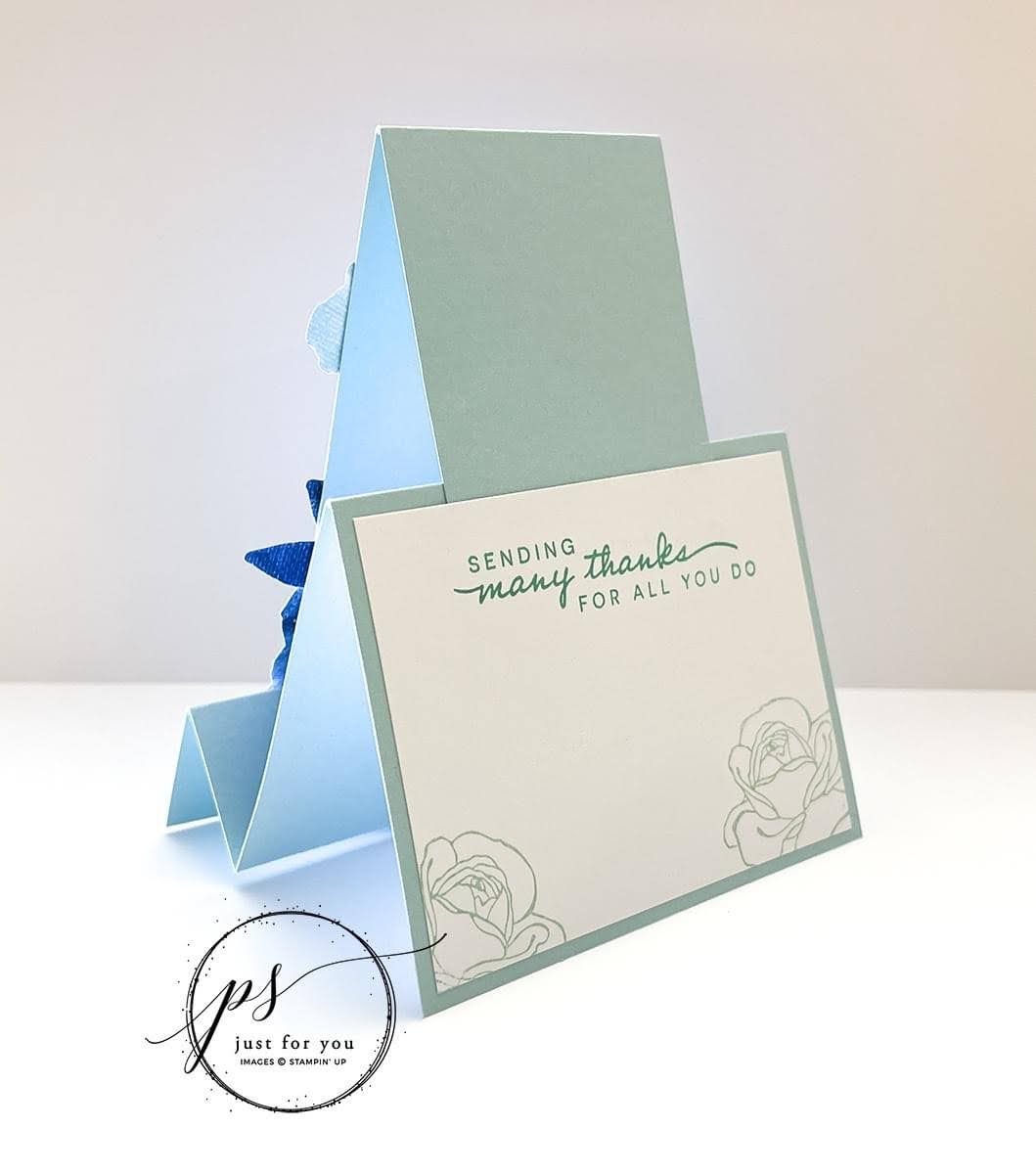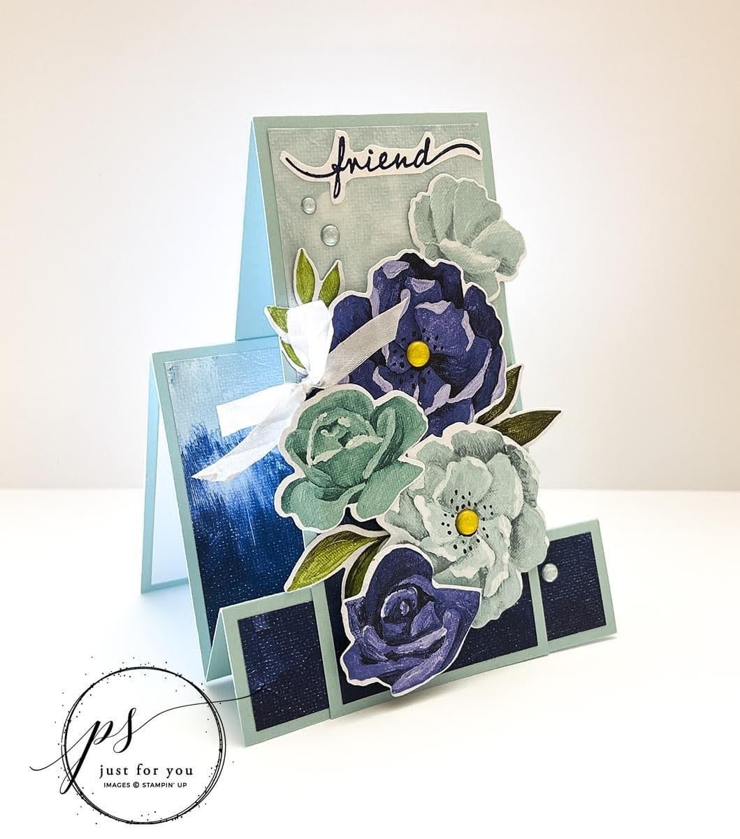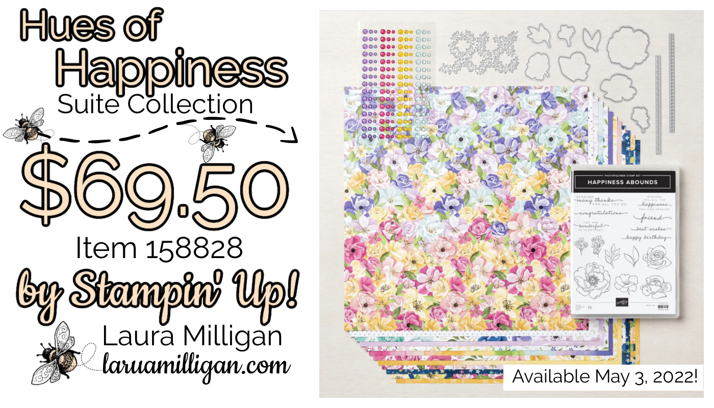 We all love fun fold cards and this “faux” side step card doesn’t disappoint! It features popular products from the Hues of Happiness Suite – they are just gorgeous!