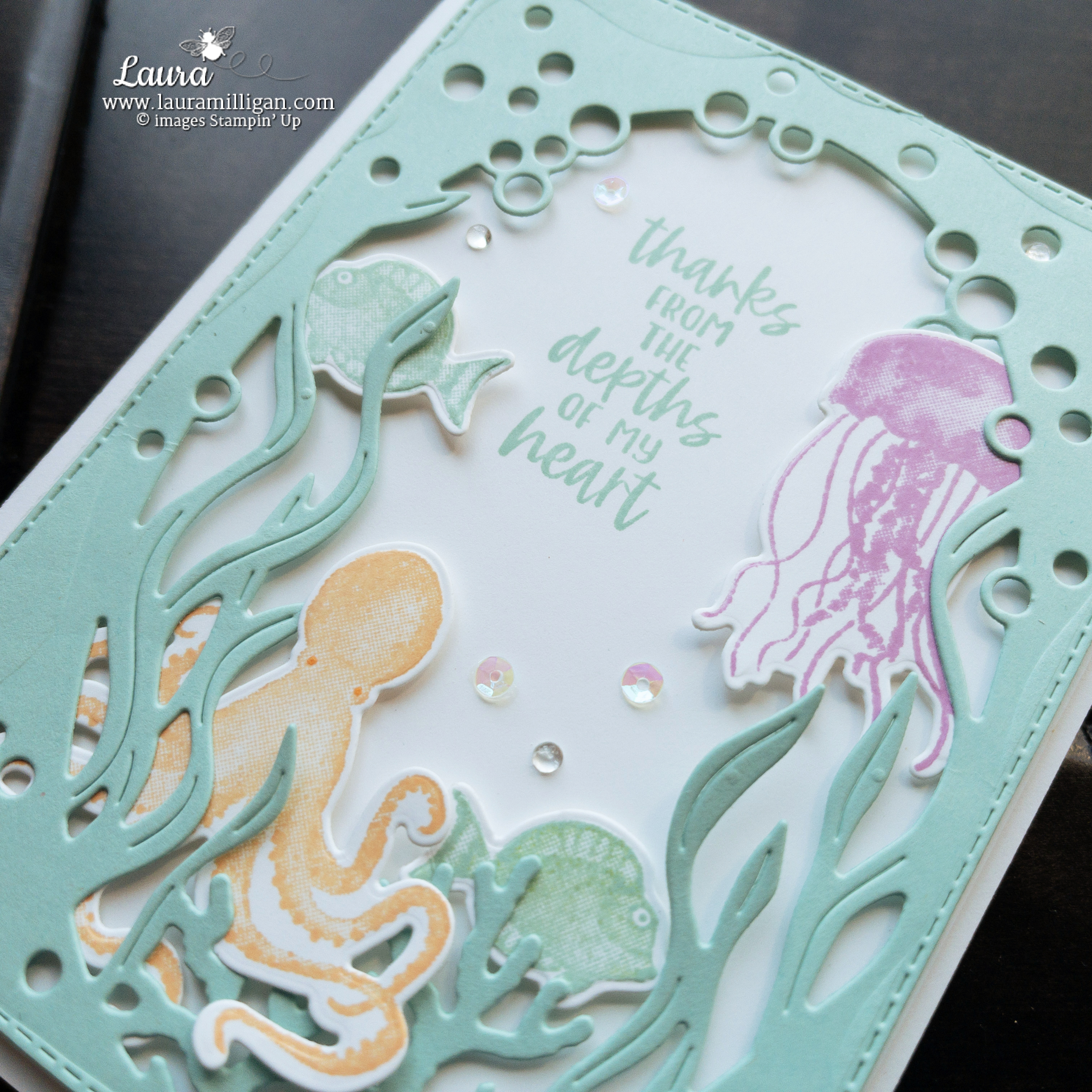- Crop the images with a Stampin’ Cut & Emboss Machine and the coordinating Sea Dies.
