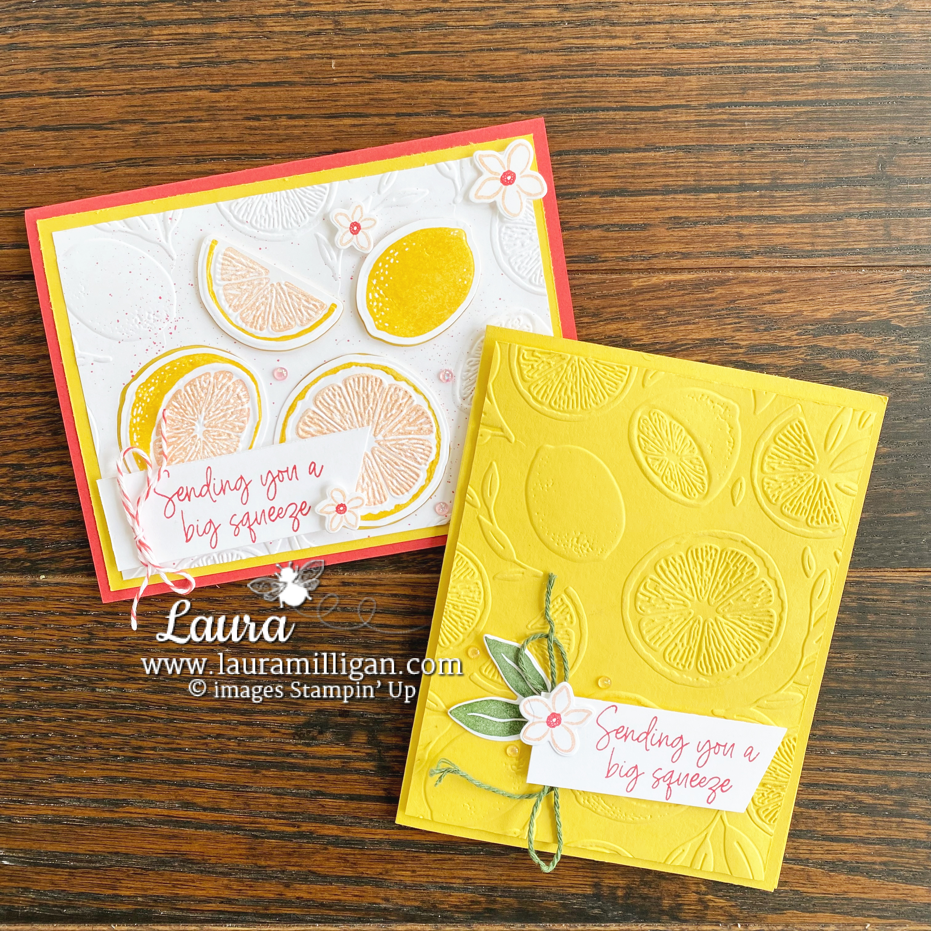 For this week’s Facebook Live, I made two cards using the Sweet Citrus Bundle with the Hybrid Embossing Folder. Here’s the replay, if you’d like to watch! These products are quite sweet!