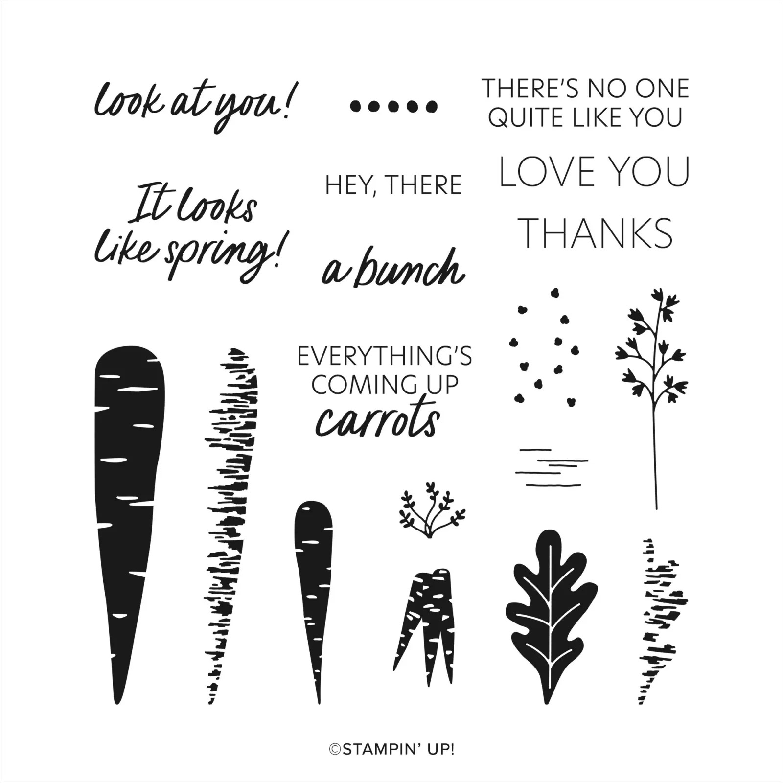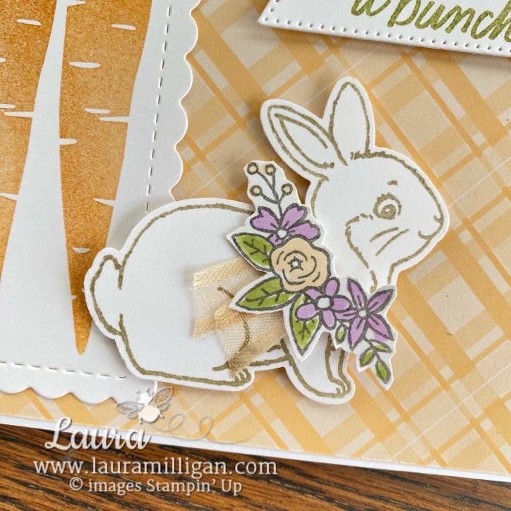 I think these two stamp sets compliment each other so well! Carrots and bunnies are a good match, right? The Thanks a Bunch set that is all about carrots has some fun word sentiments and can be earned for free with a $50 product purchase during Saleabration – which is going on now – and ends Feb. 28.