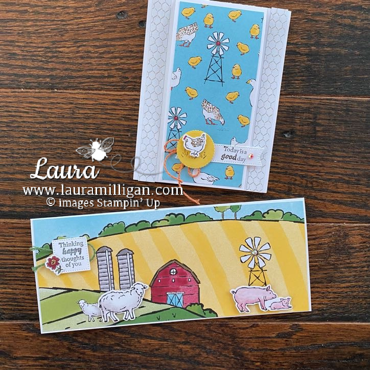 For this week’s Facebook Live, I made two fun cards using the On the Farm Bundle and coordinating Day at the Farm Designer Series Paper that can be earned for FREE with a $50 purchase during Sale-a-Bration!