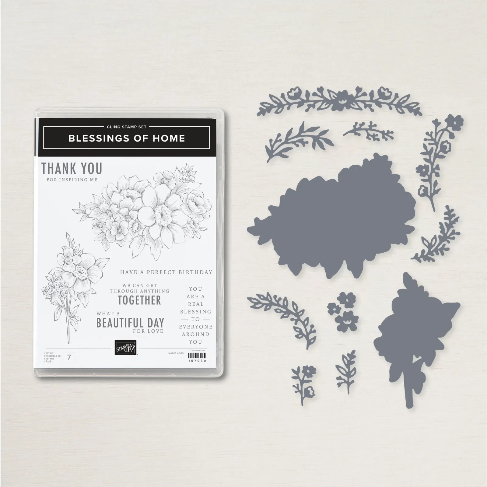- Stamp the Flower image from Blessings Of Home on 4 x 2 ½” scrap in Smoky Slate. Die Cut out with Flowers of Home Dies