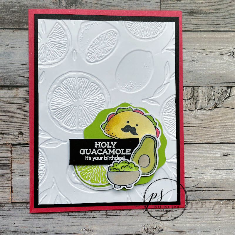 Happy Cinco de Mayo! How adorable is this fun card using the Taco Fiesta Stamp Set and the Sweet Citrus Stamp Set and Hybrid Embossing Folder by Stampin’ Up! Hope you do something fun today to celebrate Cinco De Mayo! Margaritas anyone?