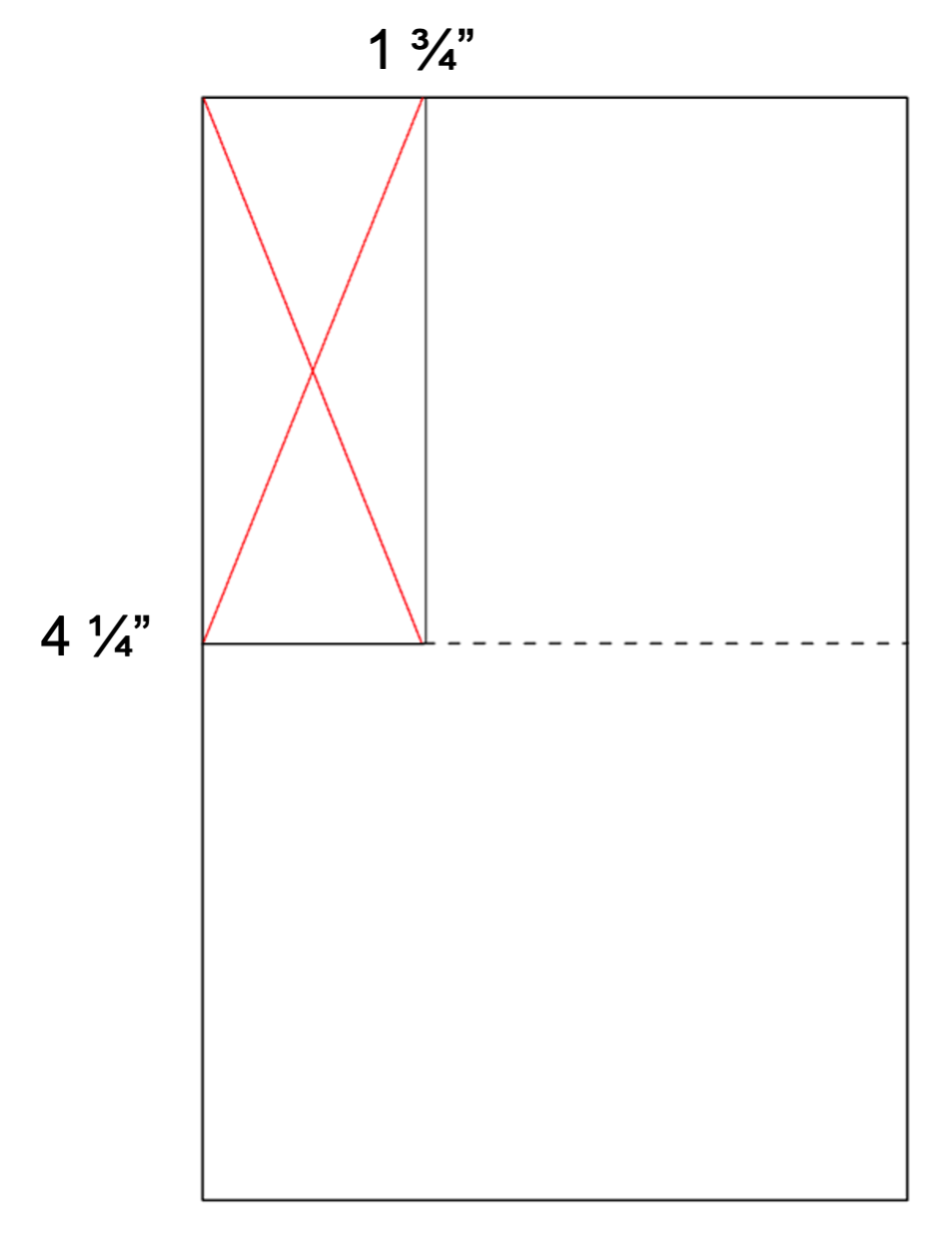 - Cut cardstock on score line on left side at 4 ¼” to the 1 ¾ mark (the part cut out is the rectangle piece with the red X).