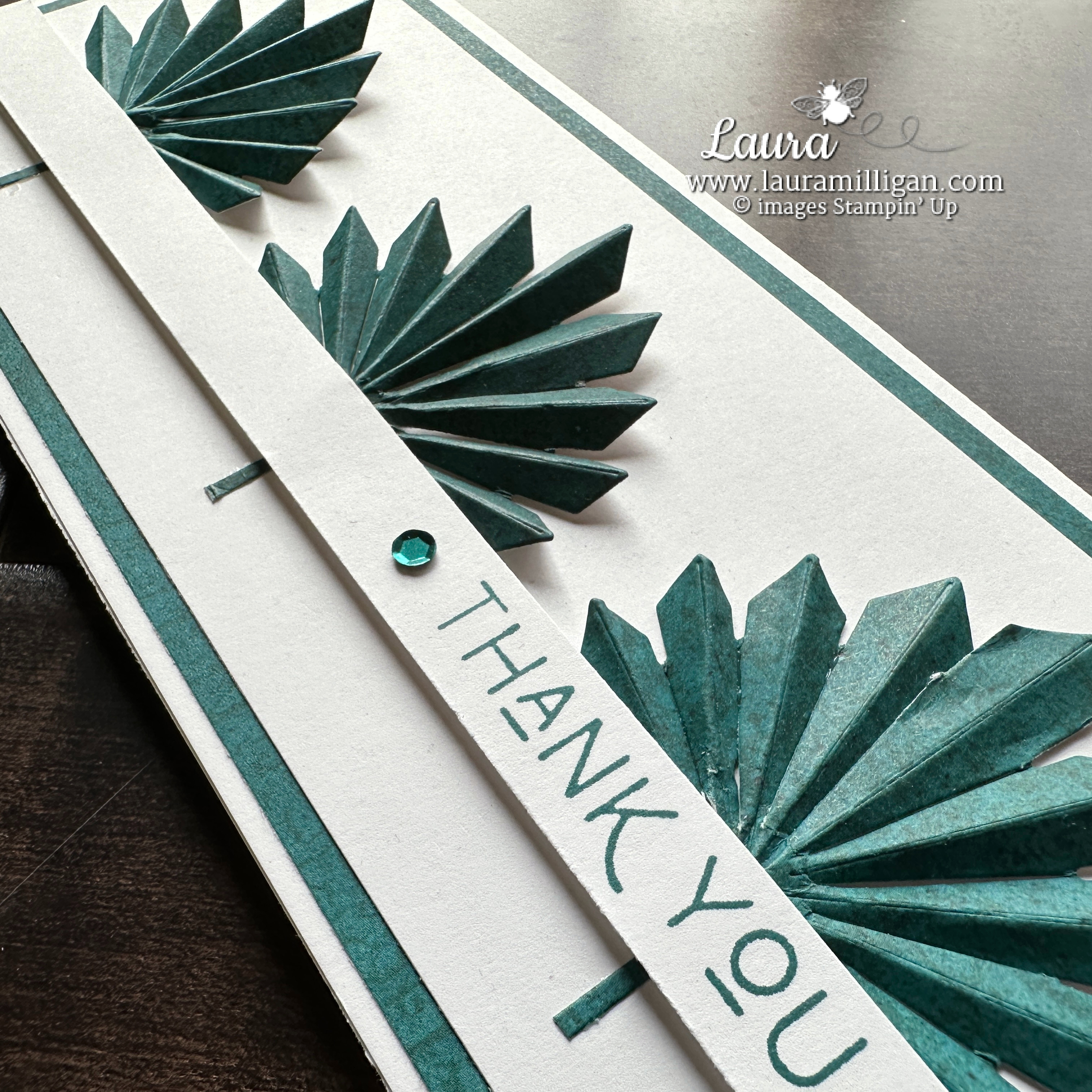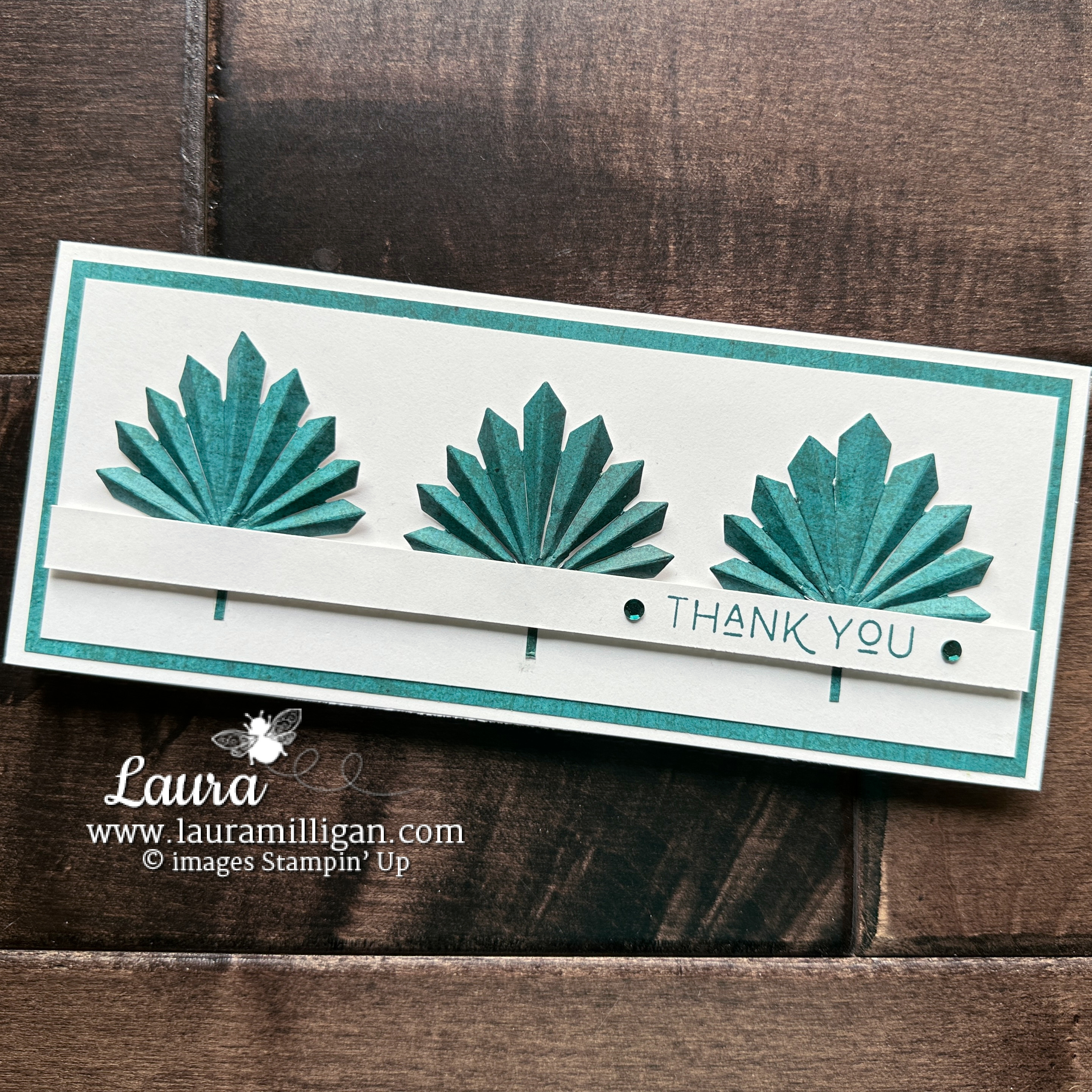 Create a beautiful, yet simple slimline card using the products from the Earthen Elegance Suite Collection from Stampin’ Up! The frond from the Earthen Textures Dies is so fun! You can leave flat or fold on the score lines for some 3-D fun!