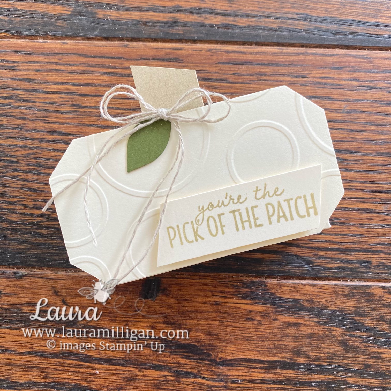 I put my own spin on these little pumpkins – and created three different ones – the first is my favorite color of pumpkin – the white ones. Then I shared a pumpkin made with Lost Lagoon cardstock! I’ve seen some pumpkins around town in so many fun colors – they are my favorite! And then the third pumpkin was created with the Pumpkin Patch bundle in tradtional pumpkin colors.