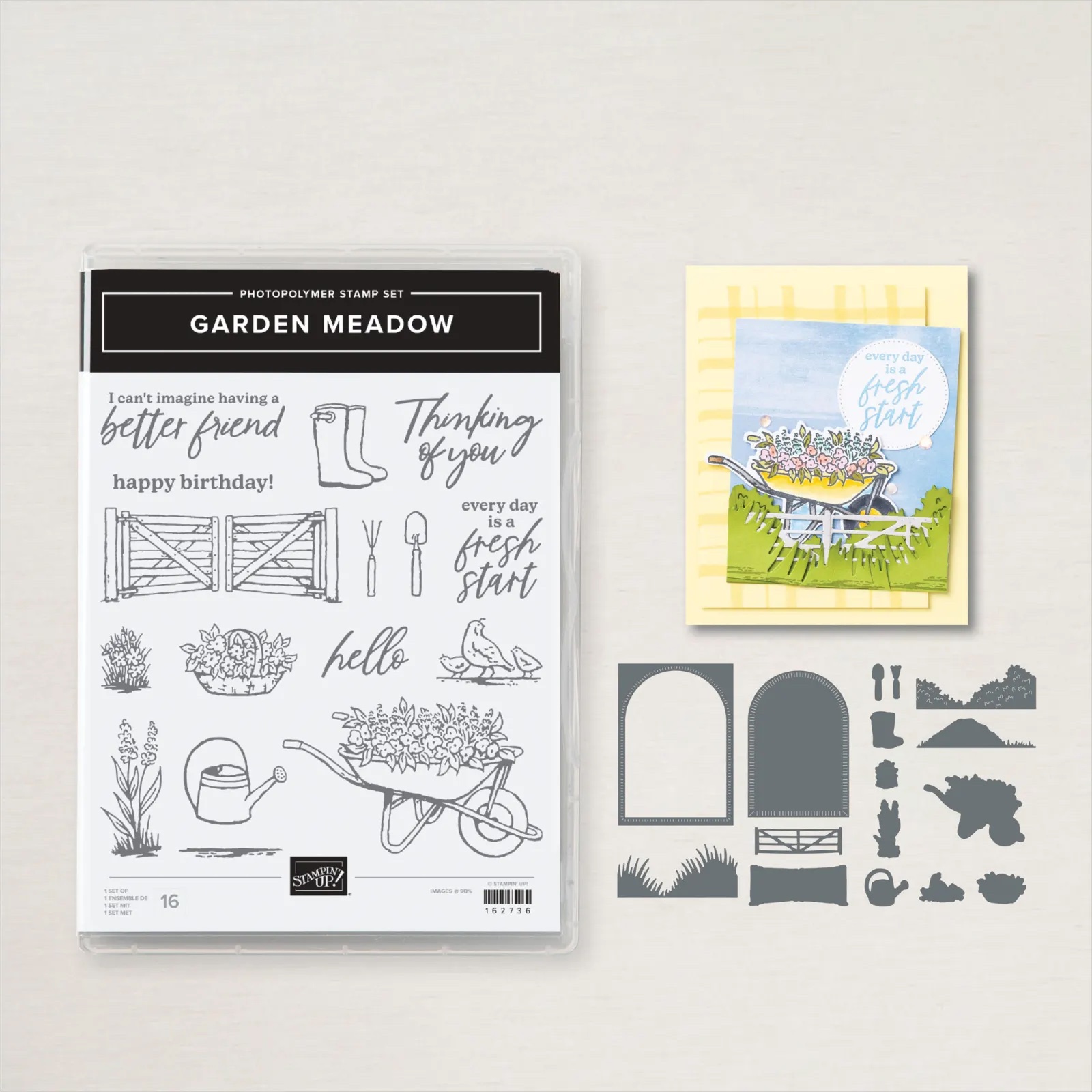 New product alert! I made a beautiful card today on my Facebook Live – and it goes together so quickly! I featured new product that will be available starting Nov. 7 via my Online Store! This is the Meandering Meadow suite – and includes the gorgeous Garden Meadow Desginer Series Paper – and the Garden Meadow bundle. The DSP itself is a must have! I of course love the bundle as I am a gardener and love all things related to gardening.