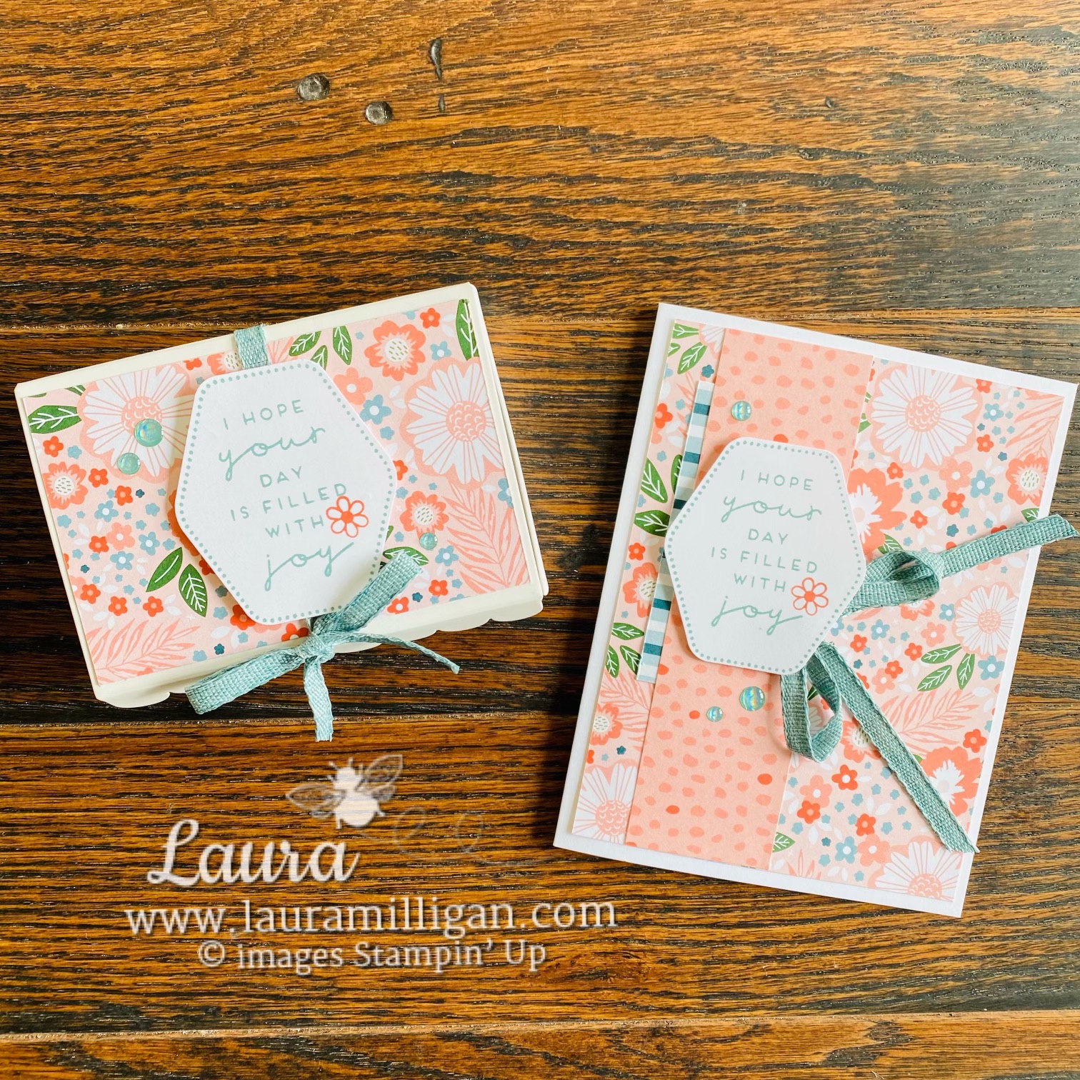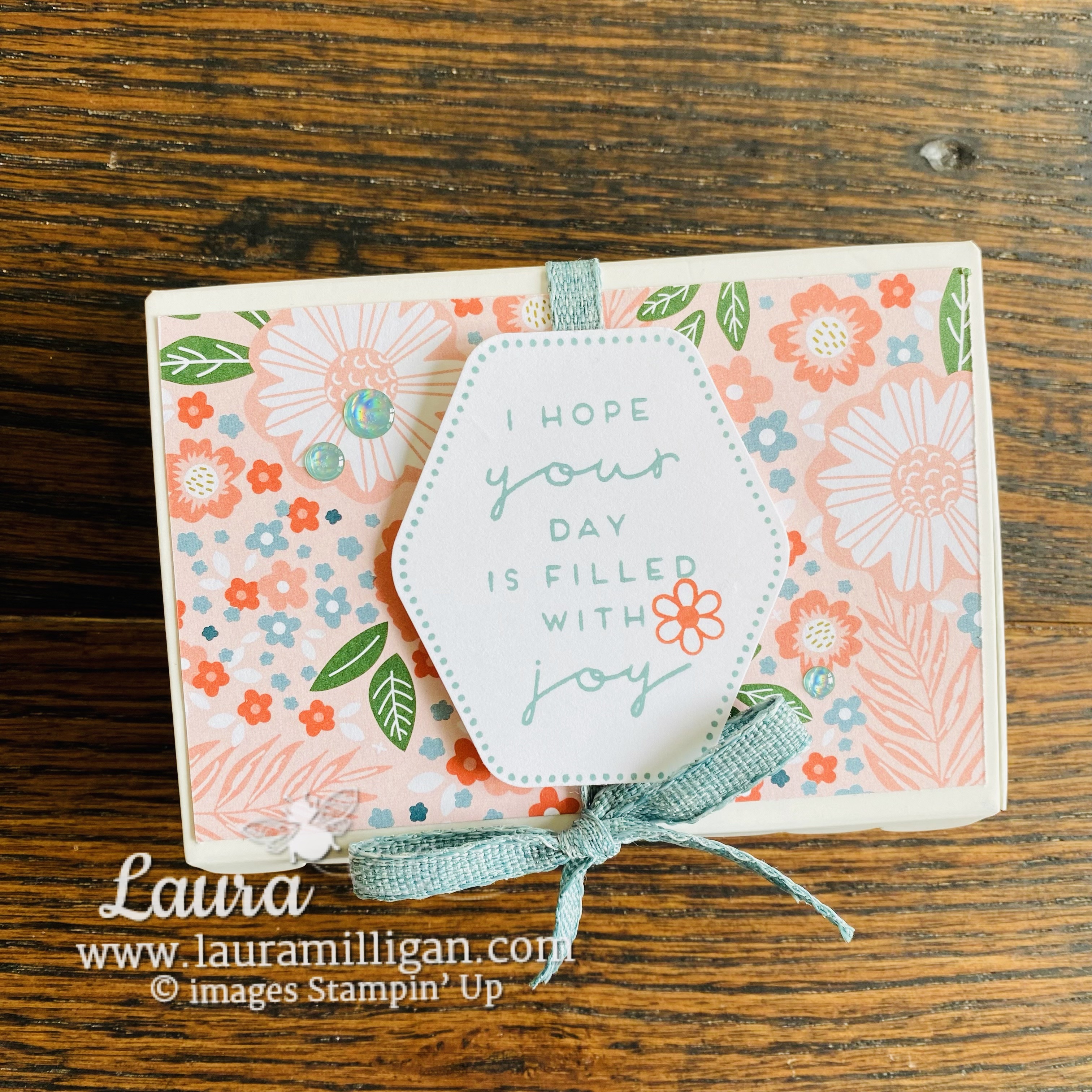 Here’s a look at the box – just changed the measurements up a bit – but other than that, it is the same as the card. And I LOVE the Lost Lagoon Ribbon – so pretty and easy to work with, and it compliments the DSP I chose perfectly!