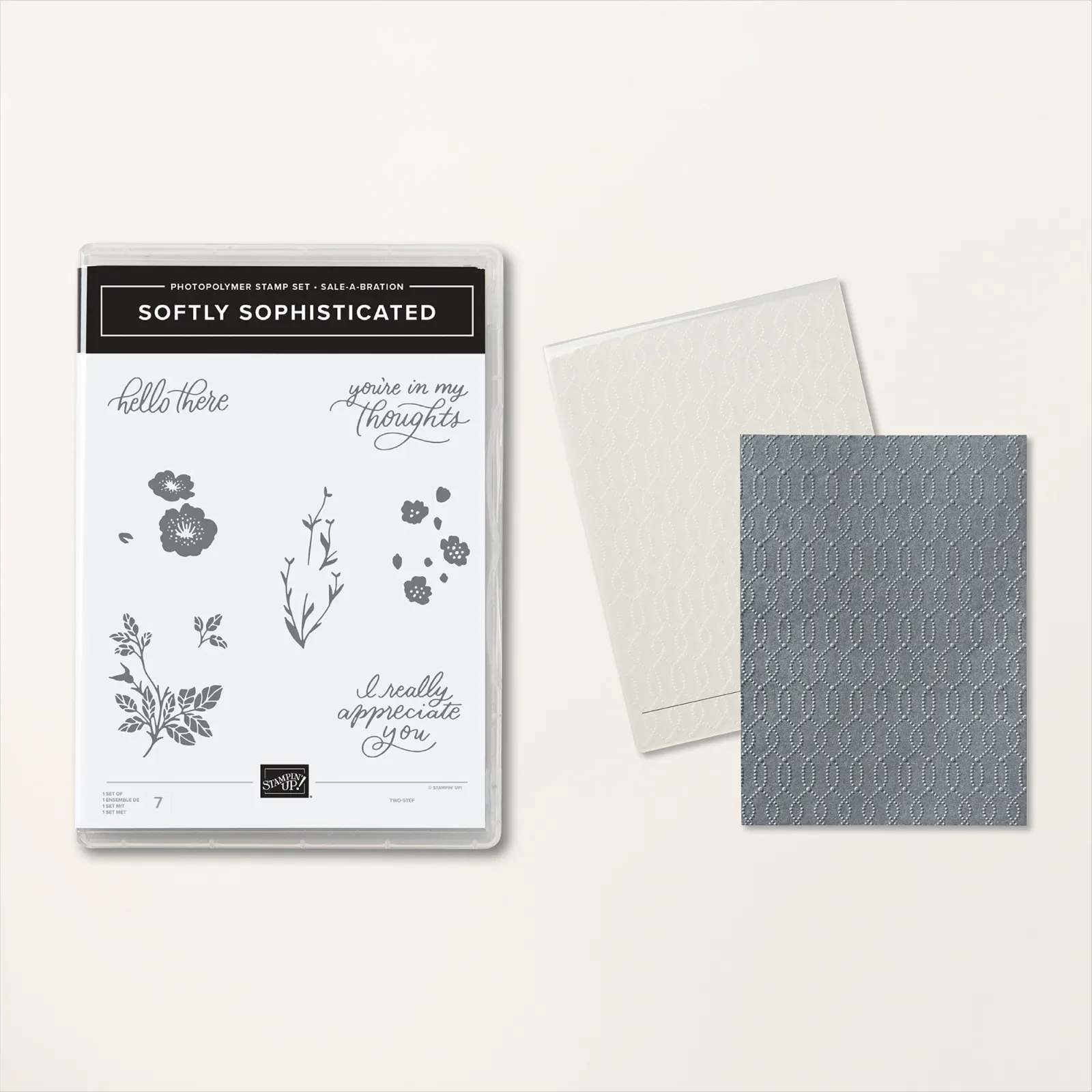 This card gets its beauty from Designer Series Paper that you can earn for FREE with a $50+ Purchase and the Softly Sophisticated Bundle you can earn for FREE with a $100 Purchase.