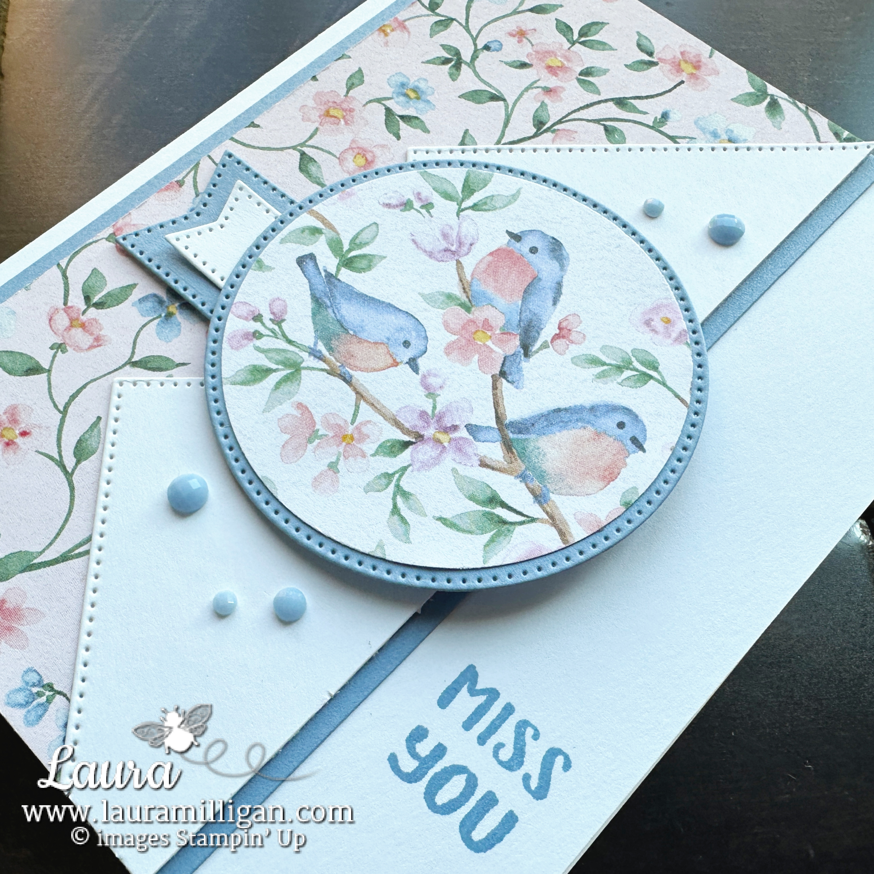 Create this Miss You Card using the Flight & Airy Designer Series Paper and Stylish Shapes Dies by Stampin' Up! Laura Milligan, Id Rather Bee Stampin (1)