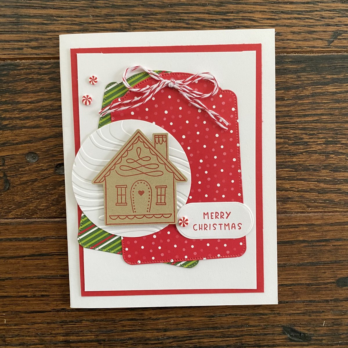 My second card featured more of the Take a Bow DSP – I used the Greetings of the Seasons dies to create the two large tags. Both the Santa and the House are from punch bundles – which means you can punch them quickly! I also used the Red & White Peppermint Gems for my embellishments on all of the cards – they are just too cute! Thanks for stopping by – I hope you like my cards!