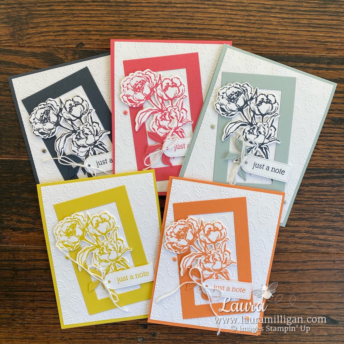 On this week’s Facebook Live, we had a blast creating five cheerful and elegant cards featuring the brand-new Stampin’ Up! 2025–2027 In Colors: Secret Sea, Cloud Cover, Timid Tiger, Darling Duckling, and Strawberry Slush! These colors are gorgeous on their own but truly shine when paired with the upcoming Beautiful Gallery Suite Collection—swoon! 💐 Each card shares the same layout but with its own personality thanks to the color variations, and that stunning floral focal point.