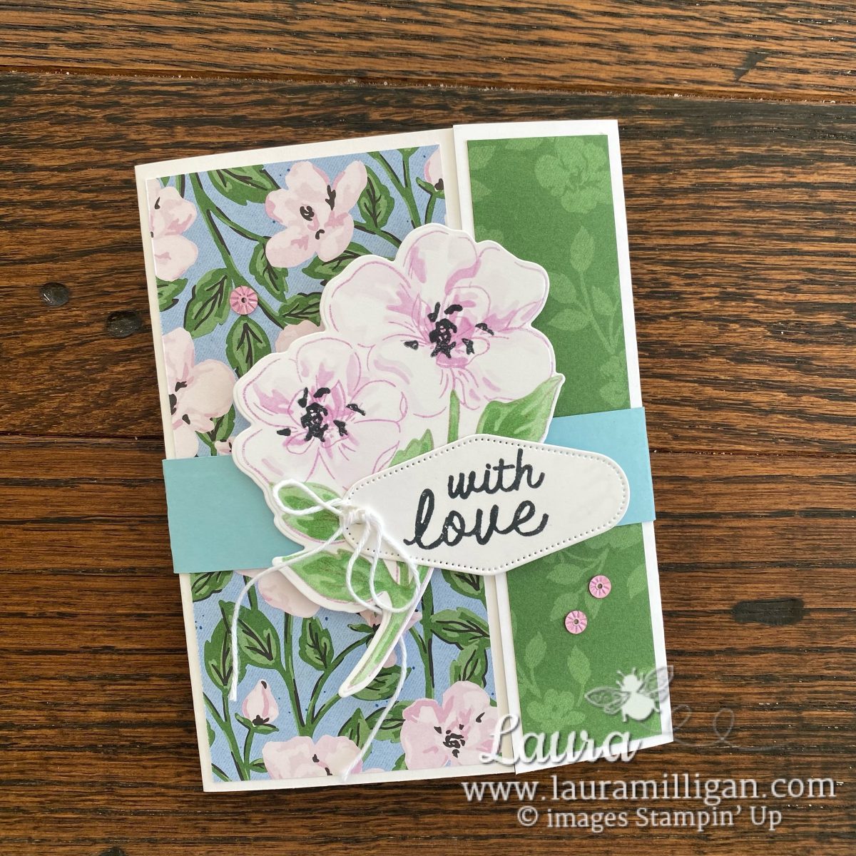 The third card is a fun fold – you can see how it comes together on the FB Live recording. For this card, I pulled the colors from the Desinger Series Paper. So pretty!