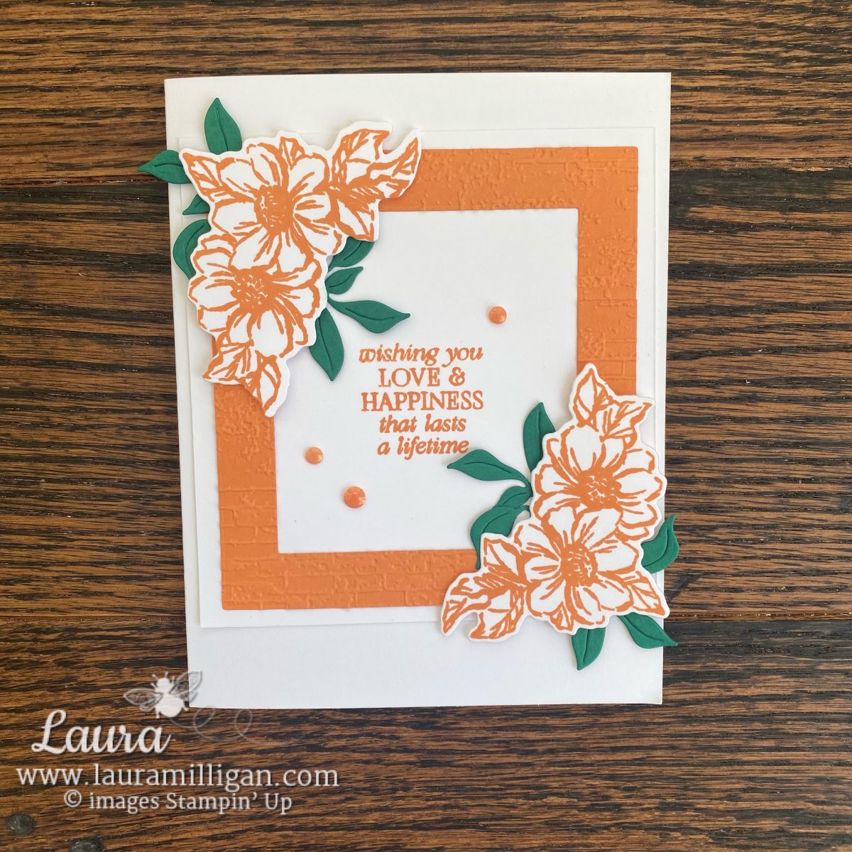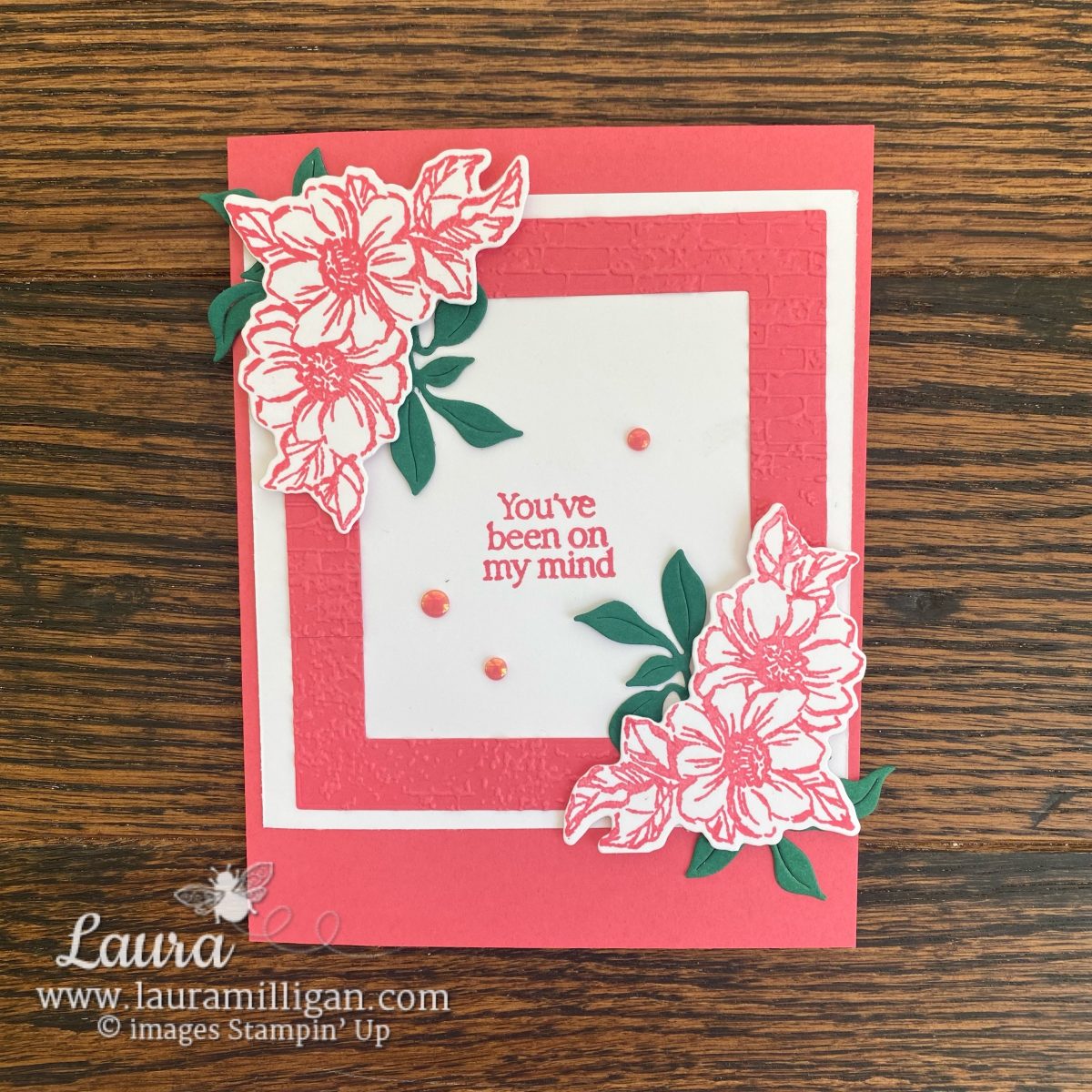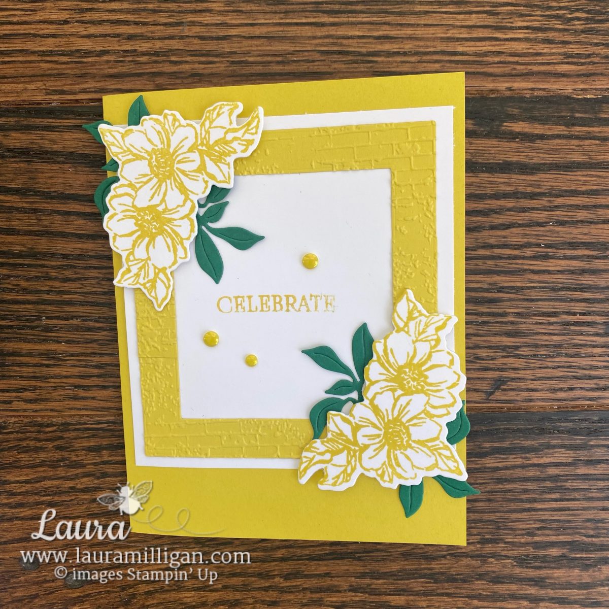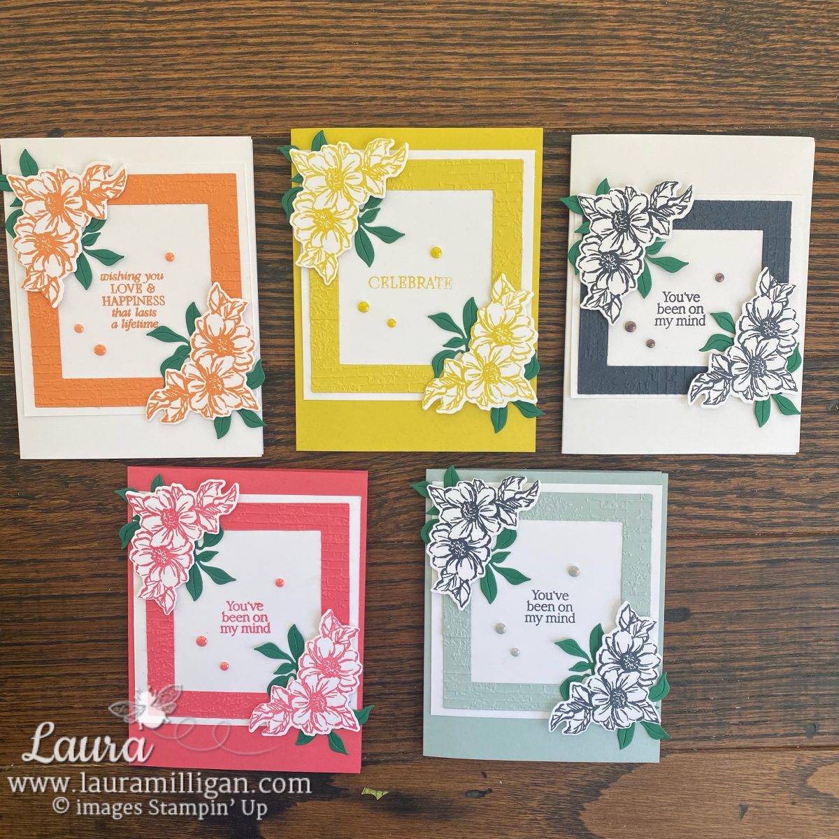 This week I used the large frame – leftover from last week’s cards – and made five different cards, also featuring the new In Colors. I actually cut the large frame in half – adhered it together, embossed it and added it to my card front. Please watch the video if you haven’t see how I did this, and how these cards go together!