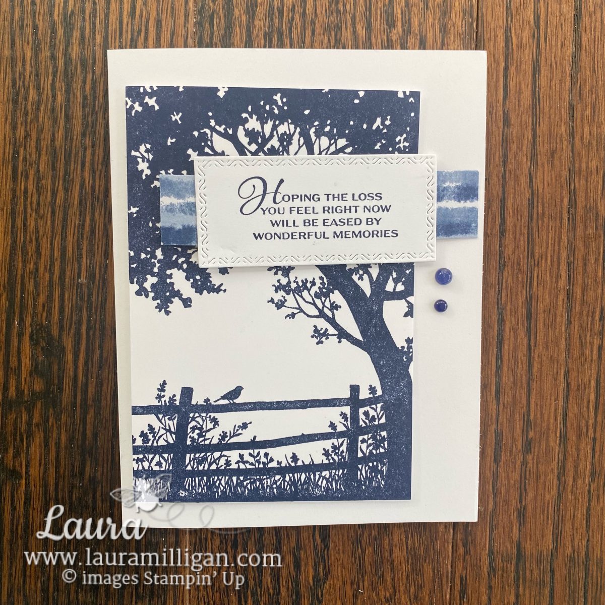 This stamp set is so special — the silhouette of that sweet fence and tree makes for cards that are peaceful, heartfelt, and perfect for a variety of occasions. Whether you need to send a little kindness, a sympathy card, or just let someone know you’re thinking of them, Peaceful View is a wonderful choice. I used the word set, The Right Words for all of the sentiments on these cards. This is a new favorite set of mine -and seemed a perfect match with the Peaceful View!