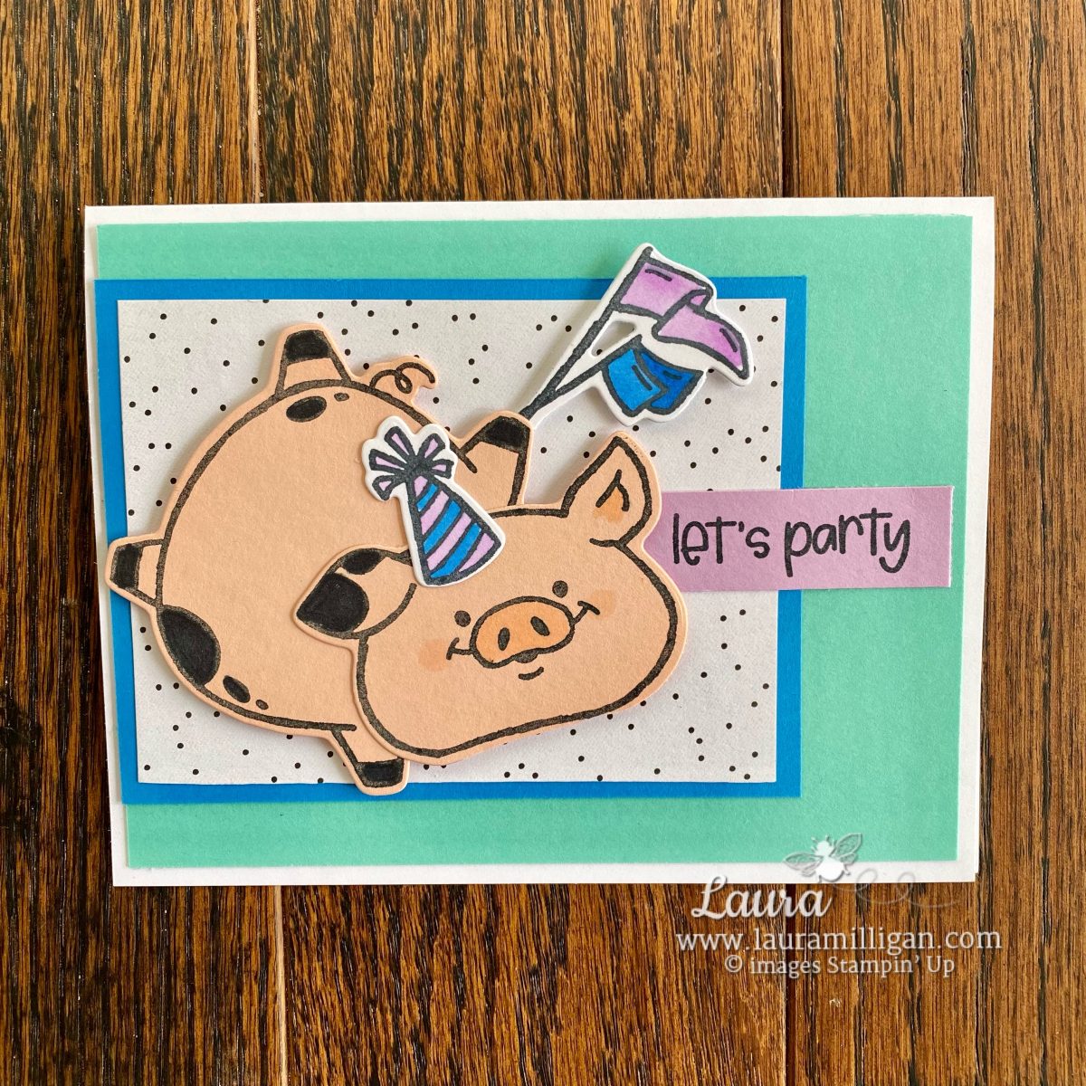 This next card is perfect for a masculine card – actually it’s perfect for anyone! This piggy is ready to party!