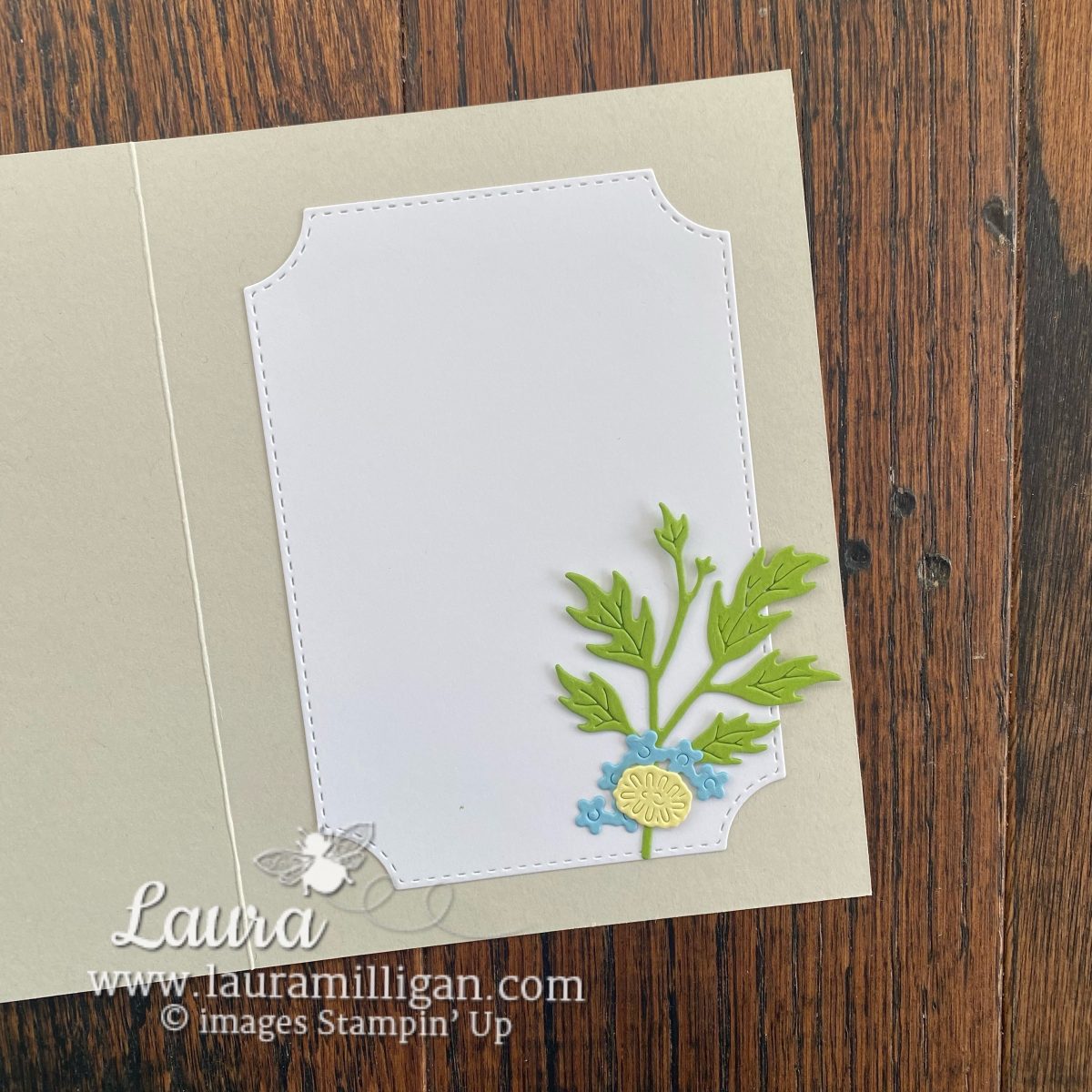 The layout is clean and classic, starting with that stitched white panel layered over a soft neutral card base. It creates the perfect “garden bed” to build on. From there, I tucked in some bright green foliage (because more leaves = more happy 🌱), and added a few tiny flowers for pops of color that feel like they just bloomed into place.