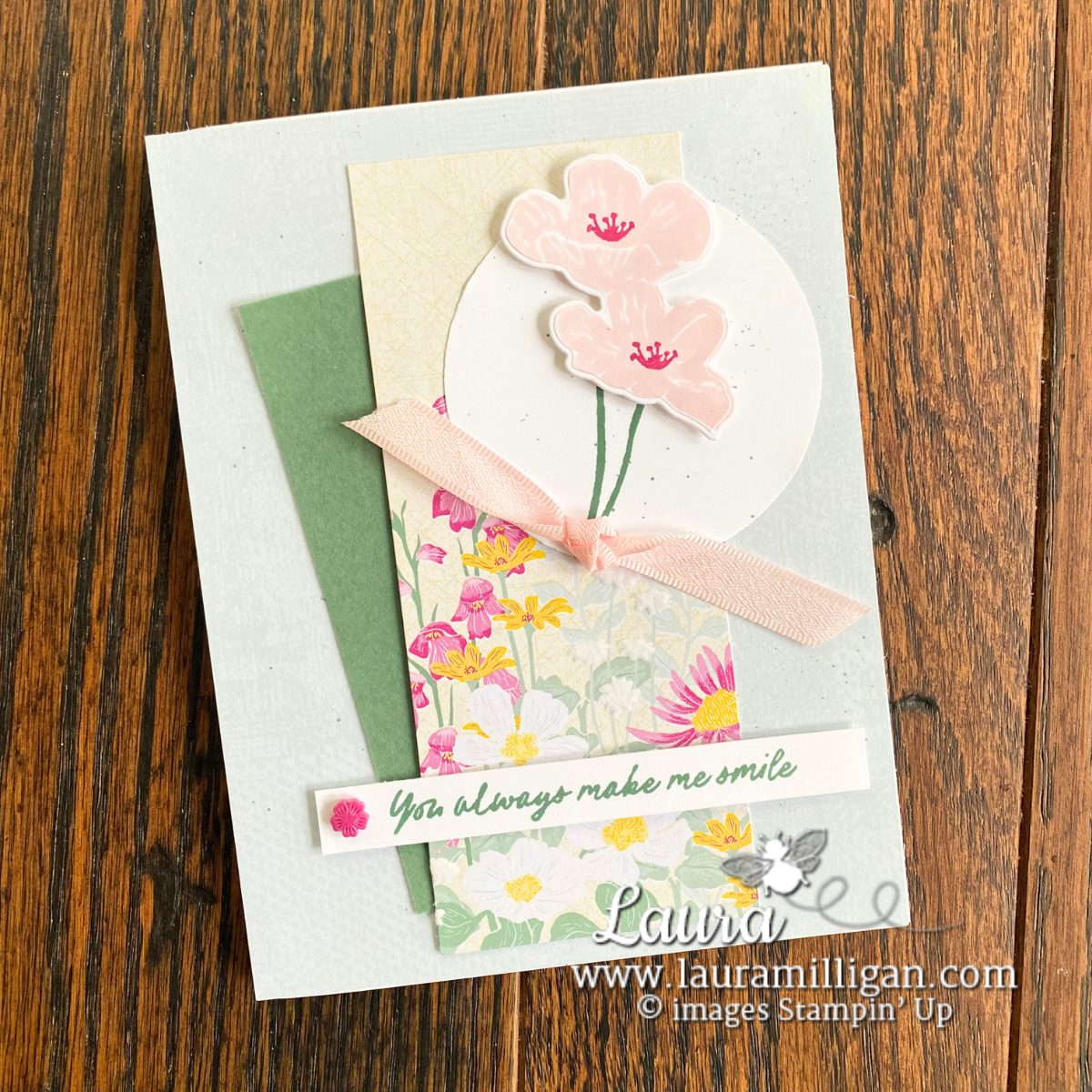 And those flowers? Stamped simply, but they stand tall and proud against that circle backdrop. It’s the kind of card that feels like a smile in paper form.