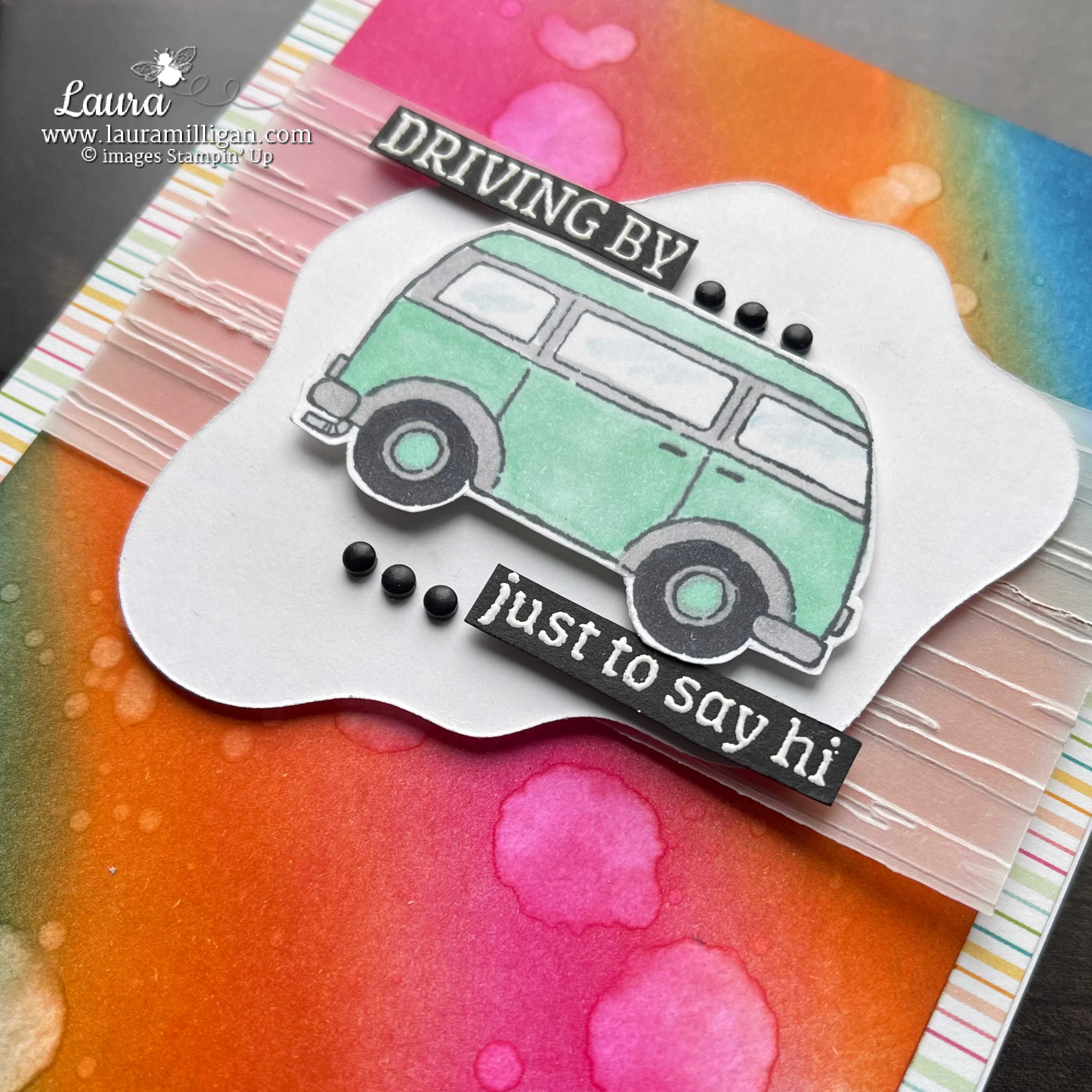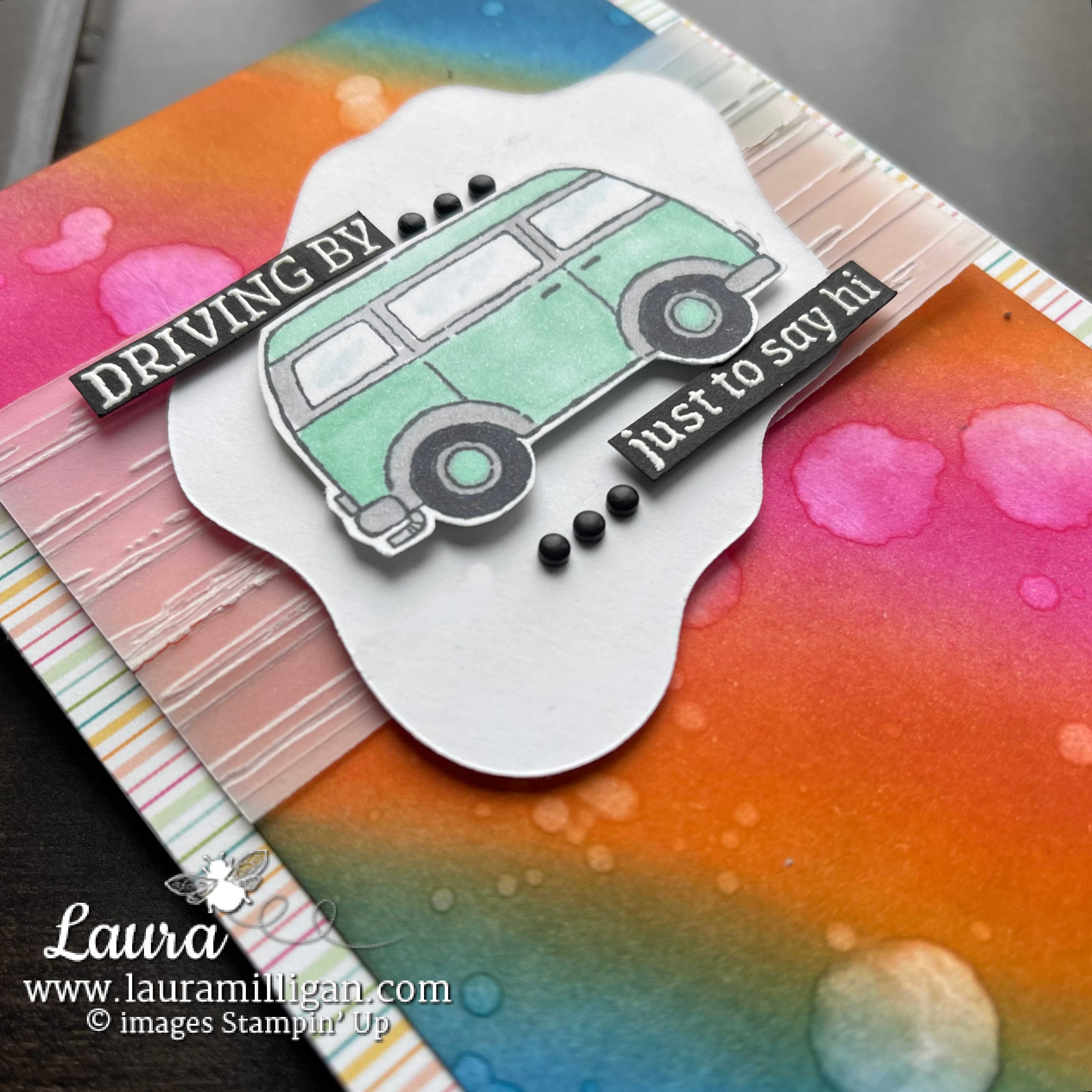 Today’s “groovy” card uses the Driving By Stamp Set that can be earned for FREE with a qualifying $50+ purchase during Sale-a-Bration, January – February 28, 20221
