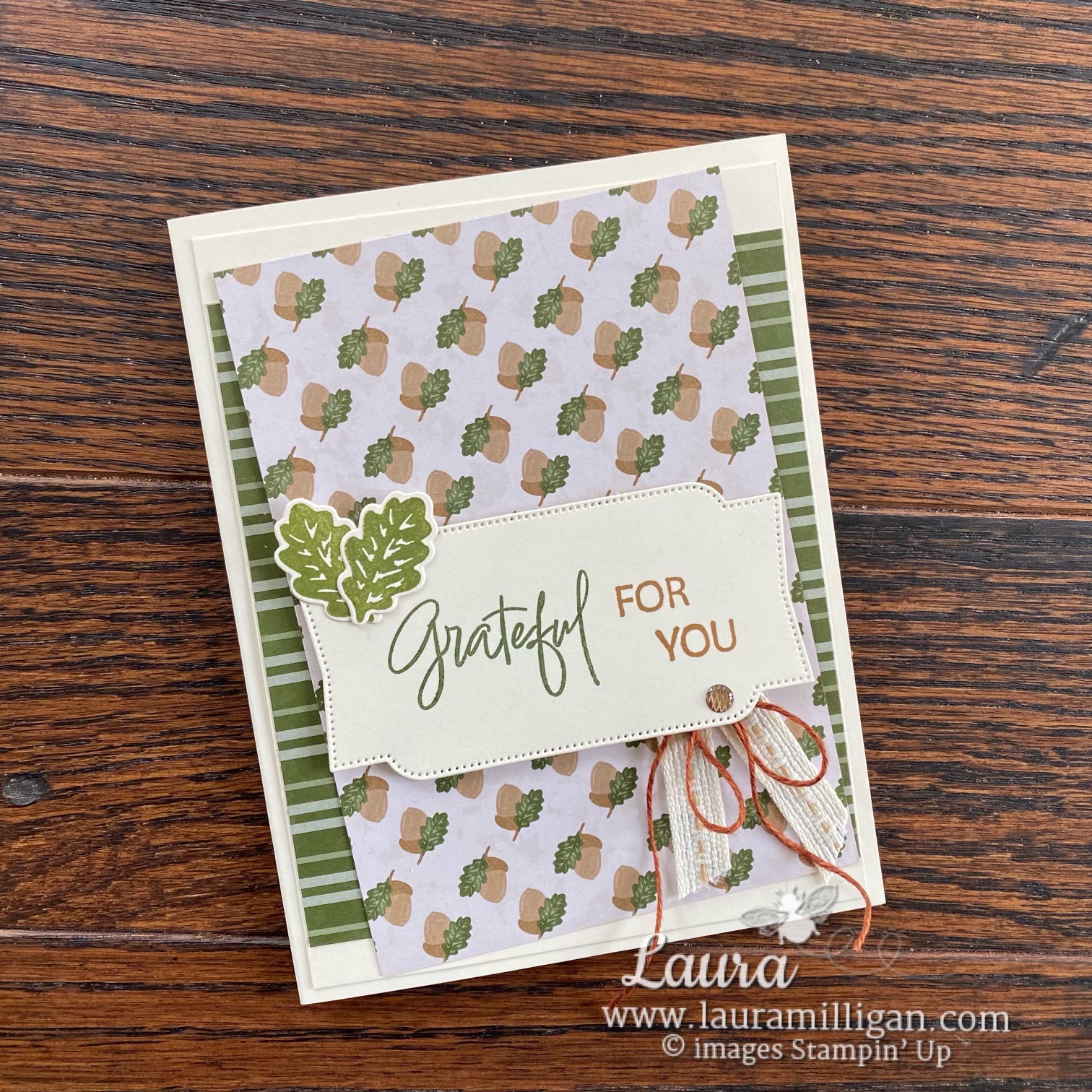This card is exactly the same as the one above – I just added more ink to the detailed leaf die. Which do you prefer? I like the lighter version, but some of the viewers on my FB Live liked this version: