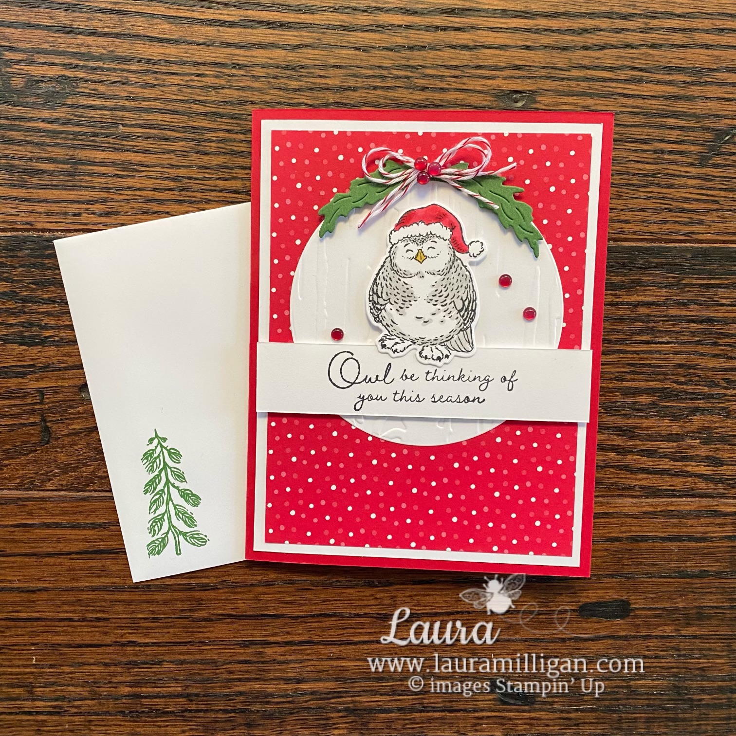 The first card I made featured the adorable owl! I did a bit of coloring and popped her on the word panel. DSP featured in these cards is the Take a Bow Paper Stack. Also used are the beautiful Cherry Cobbler and Pearl Berries – I love that they come individually but also in clusters of 3 as well.