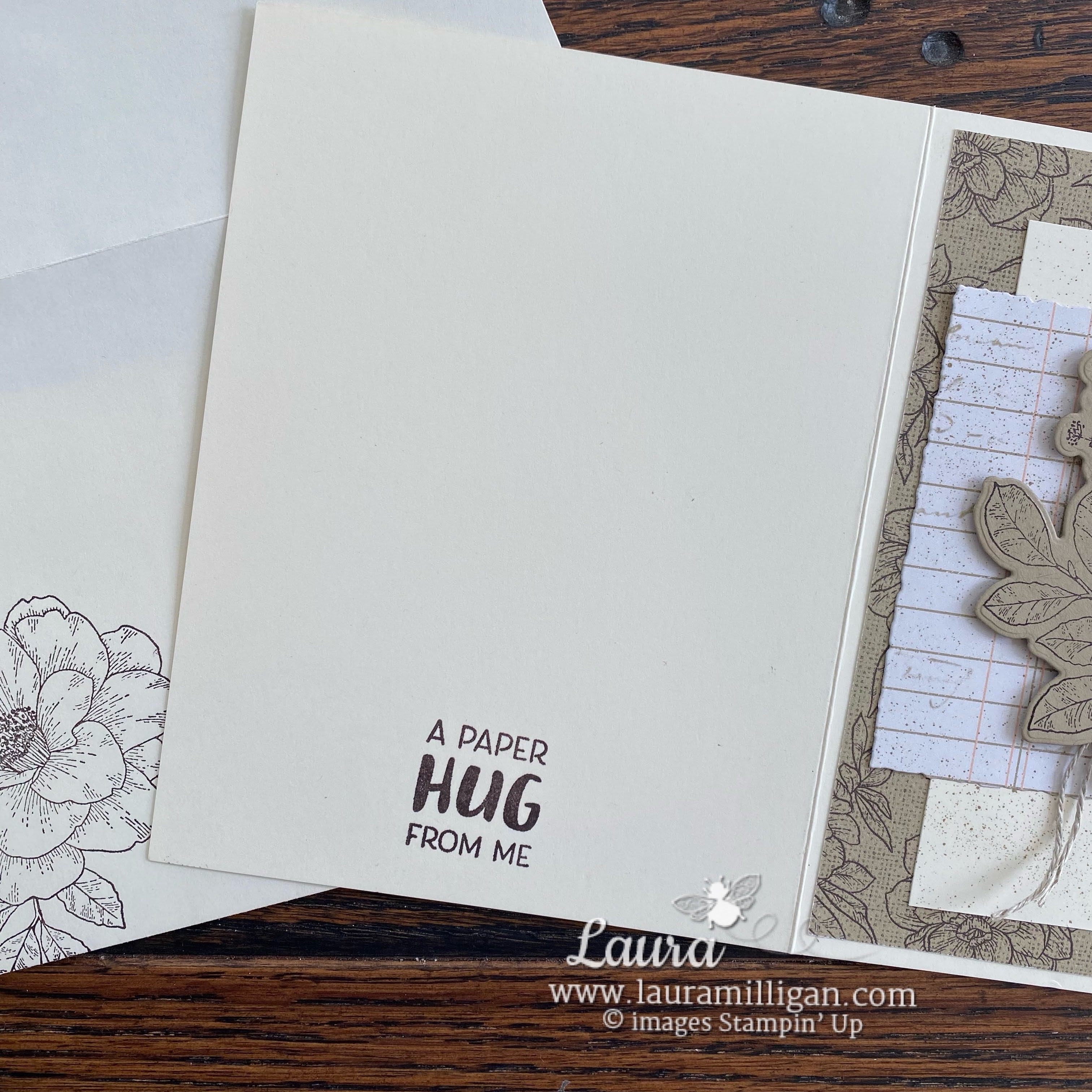 I used the Special Edition stamp set to the back of the card – I love this stamp that says “a paper hug” because that’s exactly what a handmade card is! There are some other really cute stamps in this set too!