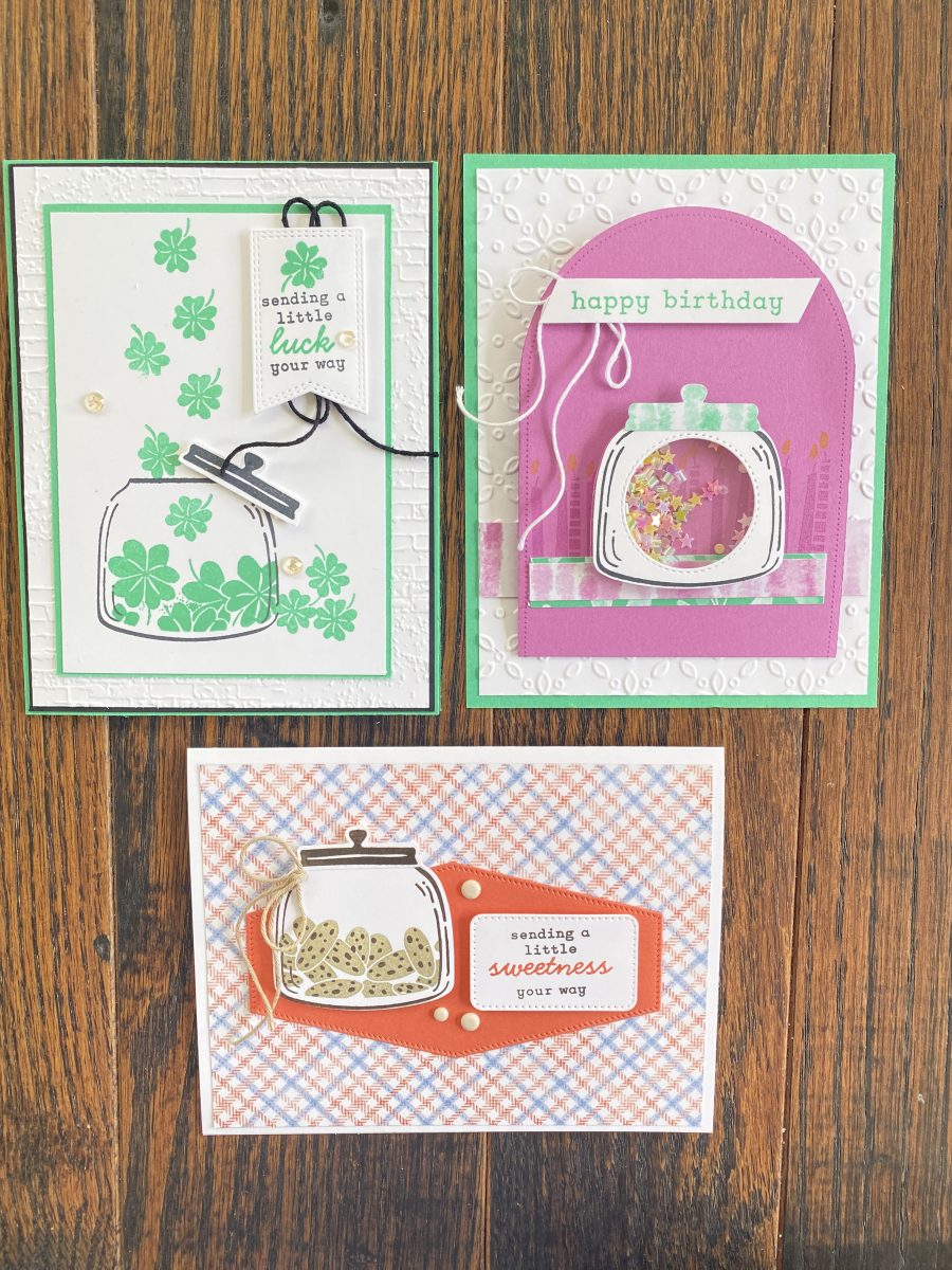 I had so much fun during my last Facebook Live creating these three cheerful cards using the Sweetest Jar Bundle. Each card shows just how versatile this adorable bundle is — from sending a little luck, to celebrating a birthday, to sharing a touch of sweetness!
