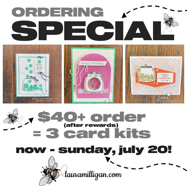 I have an Ordering Special happening now through Sunday, July 20th! When you place a $40+ order (after rewards) in my online store, you’ll receive all 3 card kits — free! It’s my way of saying thank you and giving you a head start on creating with your new goodies. Note: You will need the bundle since Stampin’ Up! policy doesn’t allow us to send stamped images in kits.