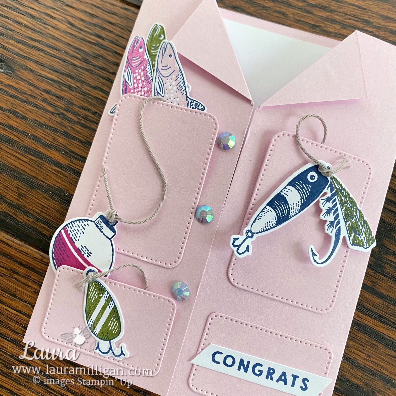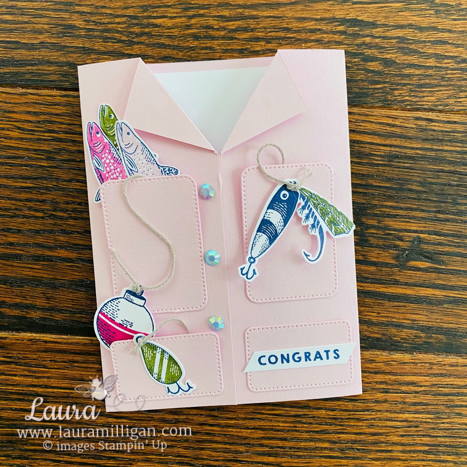 I had so much fun creating this card and wanted to share it on my Facebook Live! Don’t think of the Gone Fishing Bundle as just for men – clearly there are women who love to fish as well!