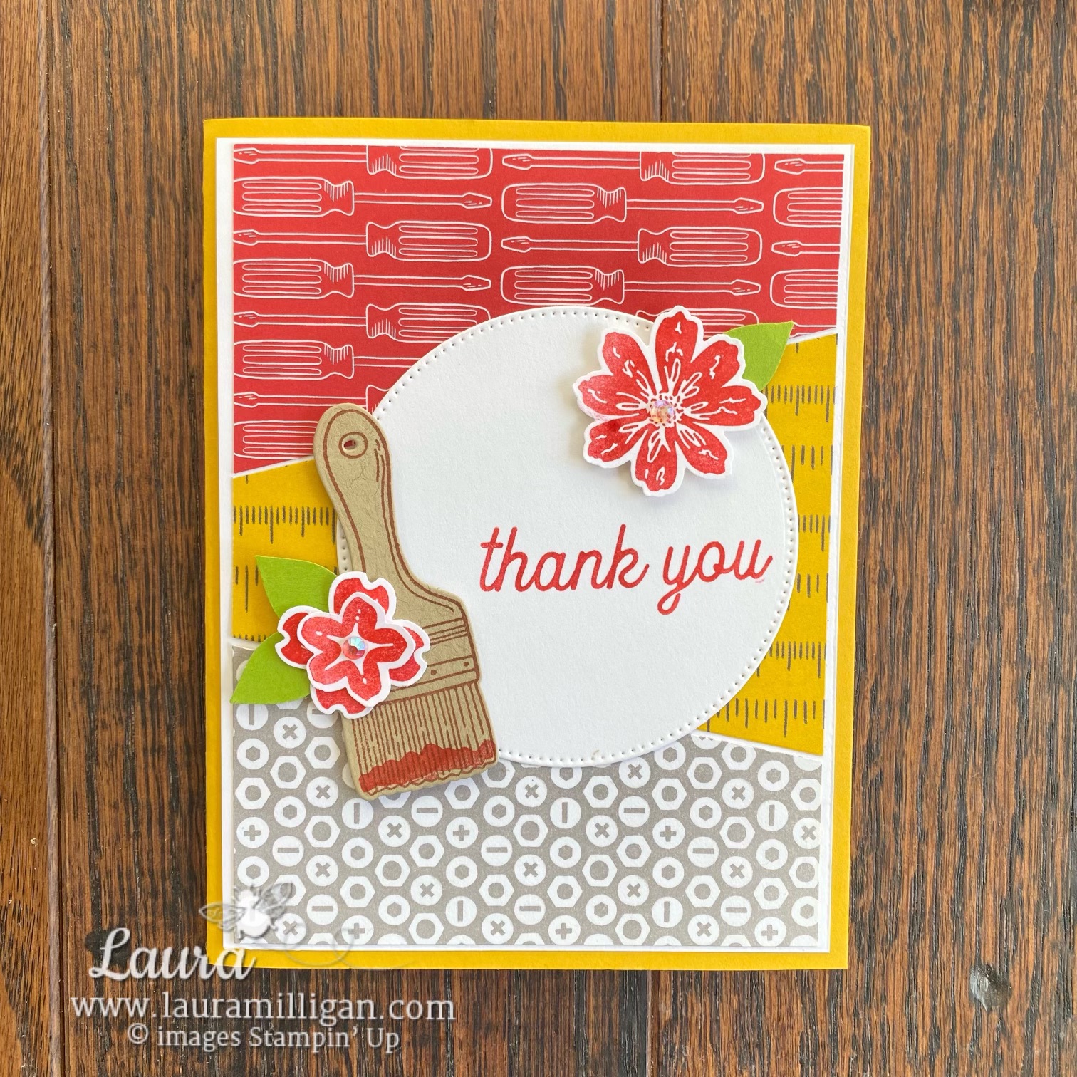 I had so much fun creating these three cards using the Stack, Cut and Shuffle Technique. Basically you stack three differet sheets of Designer Series Paper, cut them and shuffle them so you get all three patterns on each card front! I featured this amazing Trusty Tools bundle from our January – April mini catalog, and also the coordinating Trusty Toolbox Designer Series Paper. Don’t miss this Designer Series Paper – it is FREE with a qualifying Saleabration purchase. And just an FYI in case you didn’t know – Salebration ends tomorrow -and this paper will go away! It pairs perfectly with the dies in the Trusty Tools bundle!