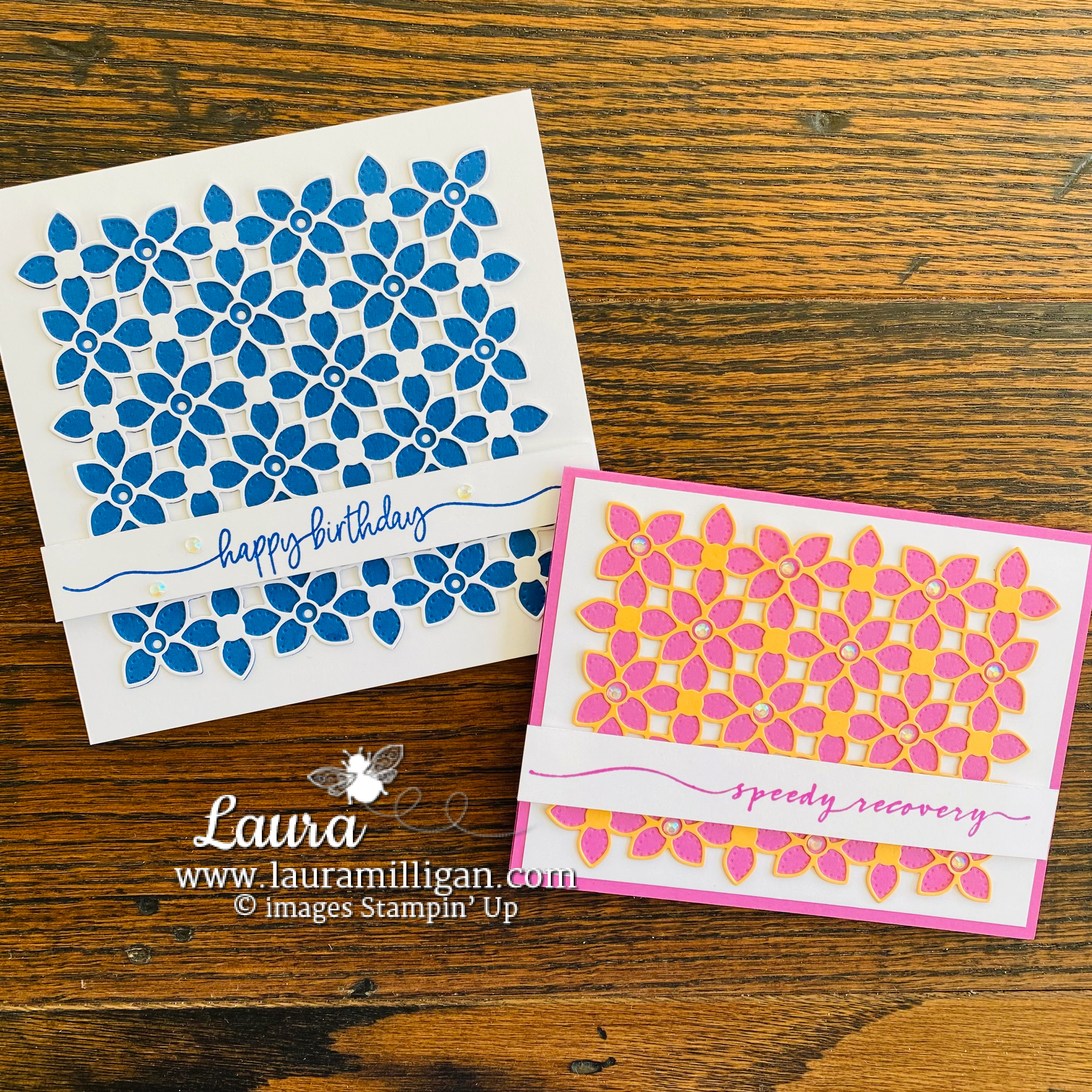 I showcased the Petal Patterns Dies, along with the Sweetly Scripted Stamp Set and two NEW IN COLORS in my Facebook Live Monday! I created this beautiful card duo, watch the video for the step-by-step instructions below: