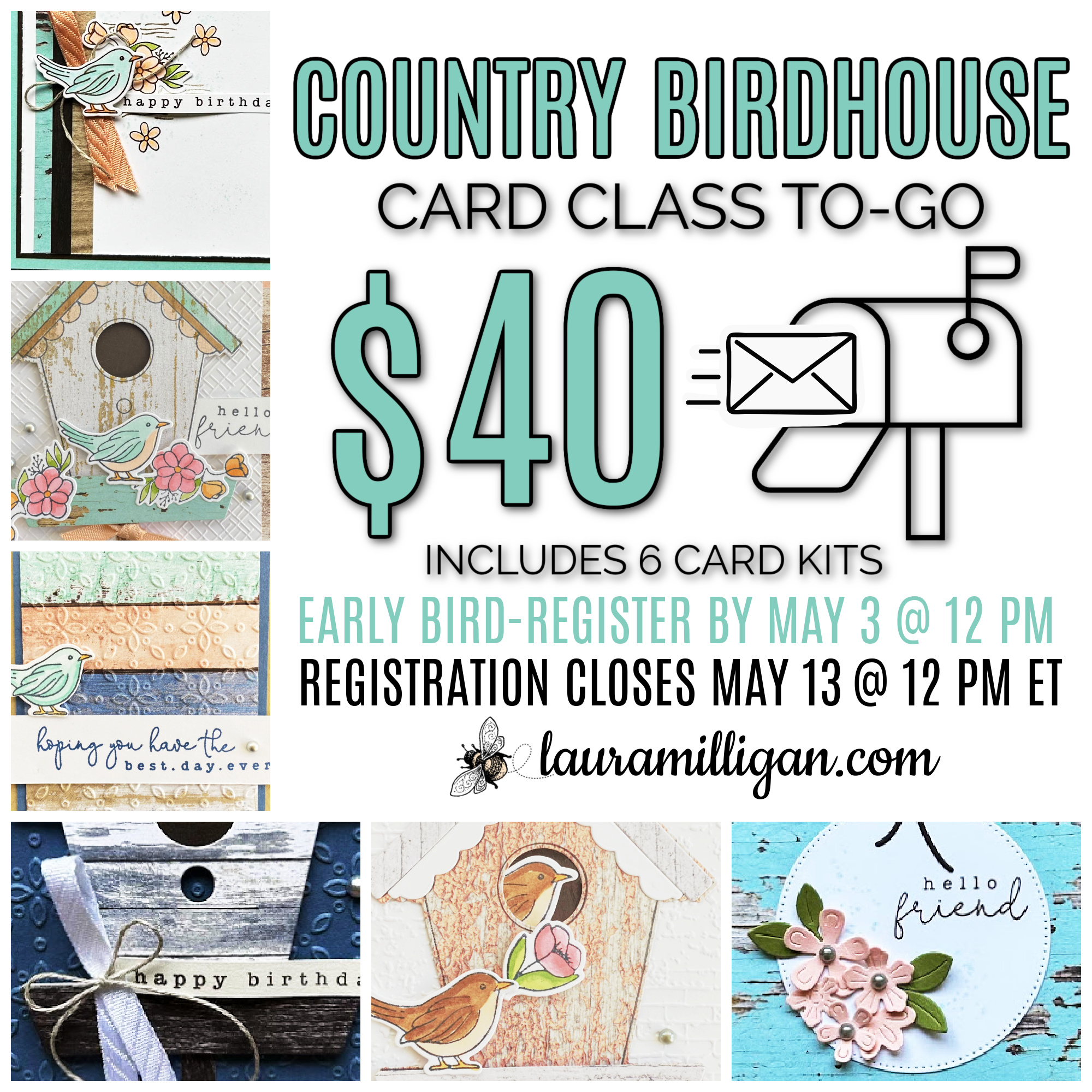 Registration for the Country Birdhouse Card Class closes on MONDAY, MAY 13 at 12 PM EST. See all the details and request to register here.