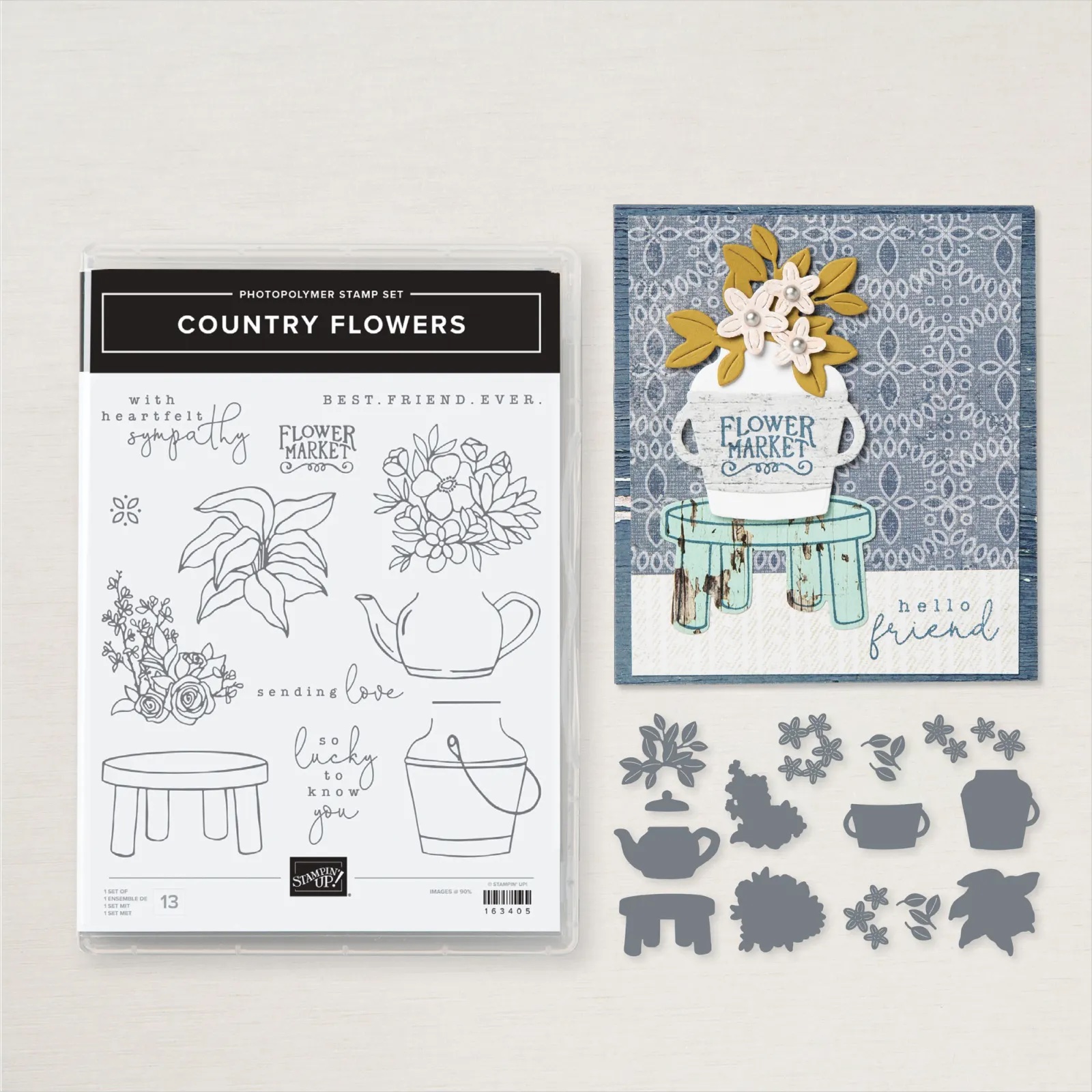 Today’s card shares a SNEAK PEEK of the NEW Country Flowers Bundle from Stampin’ Up! This bundle (along with the Country Woods Suite Collection) will be available on Wednesday, May 1!