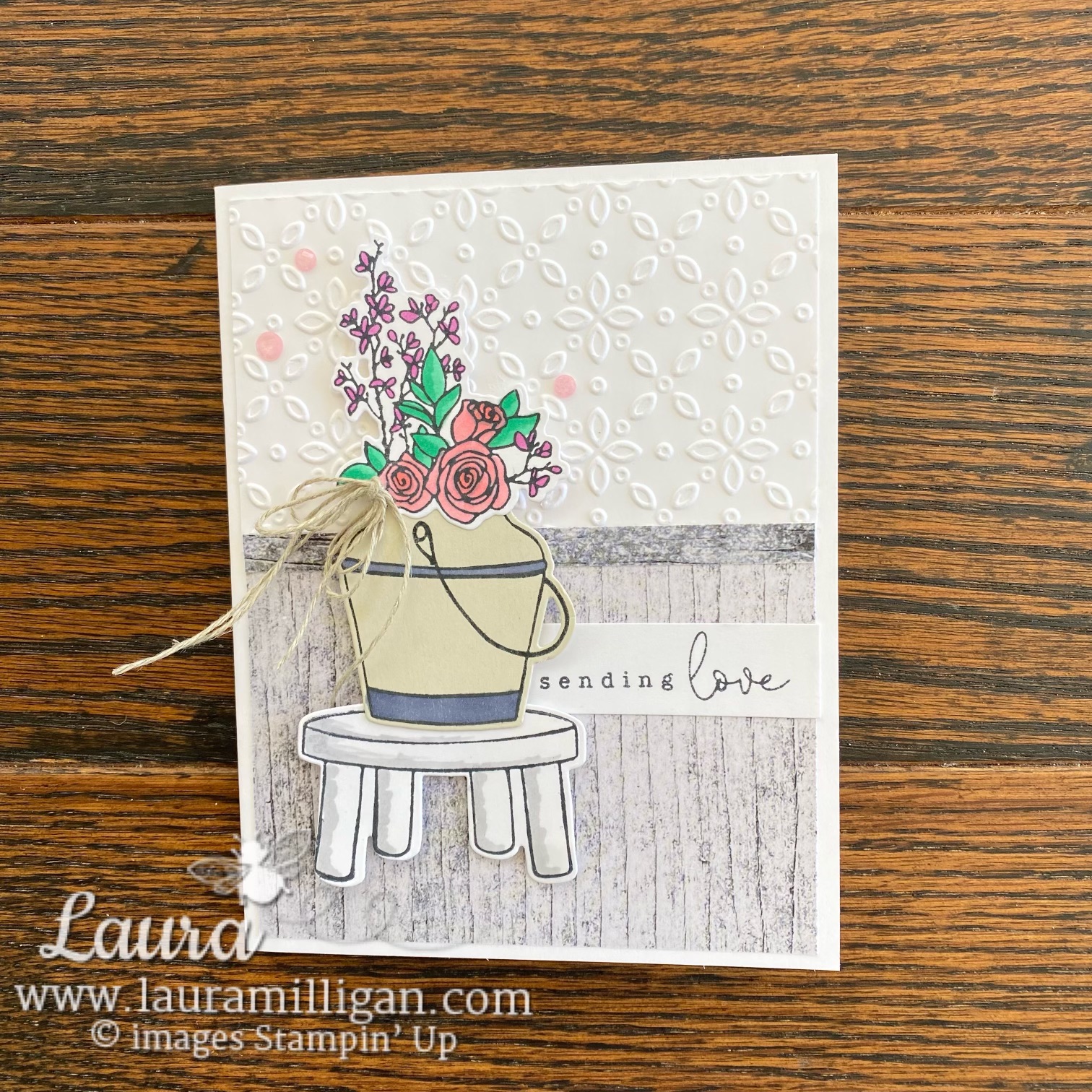 - Use Stampin’ Dimensionals and pop up stool and flowers and bucket.