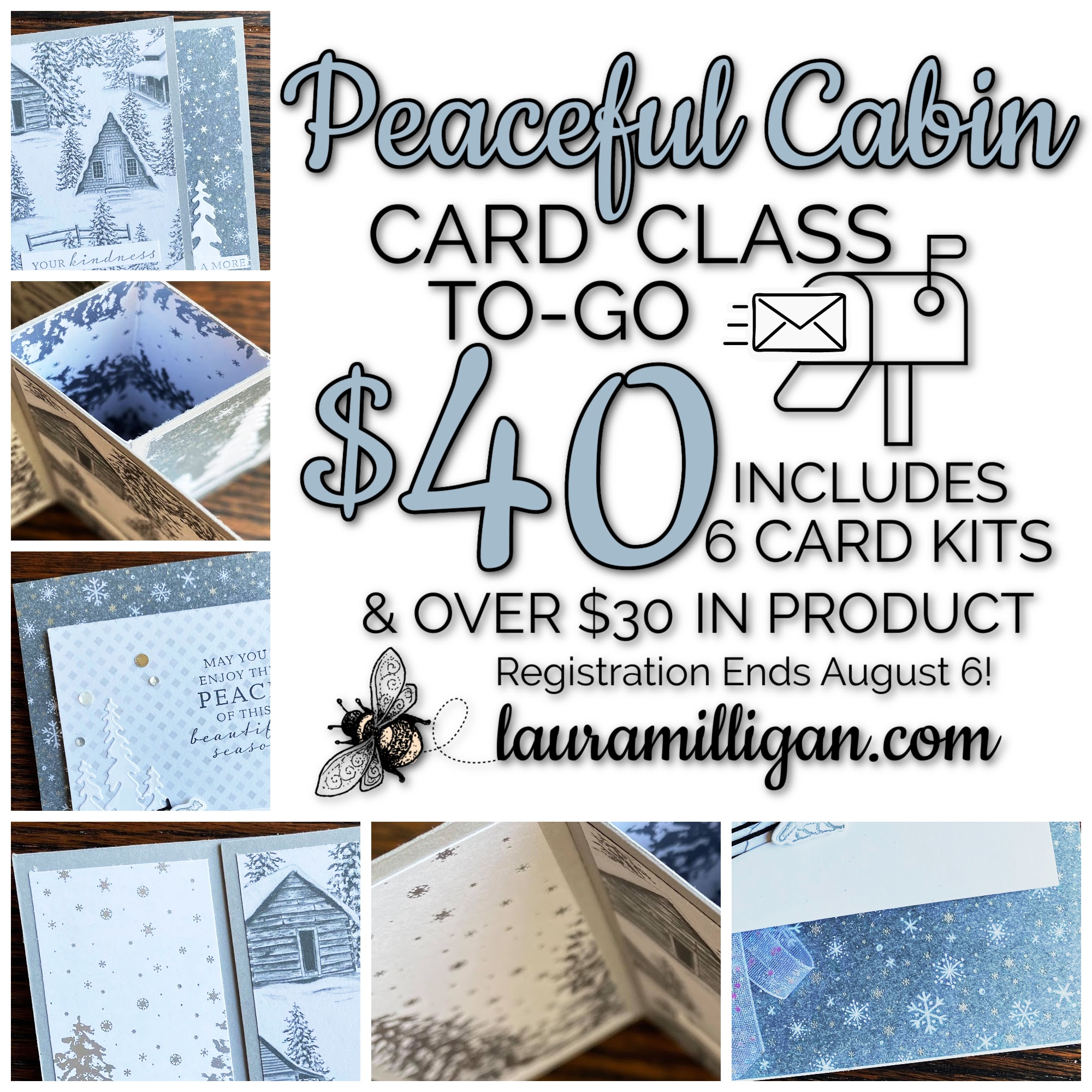 Registration is open from now to August 6 for my Peaceful Cabin Card Class to Go!