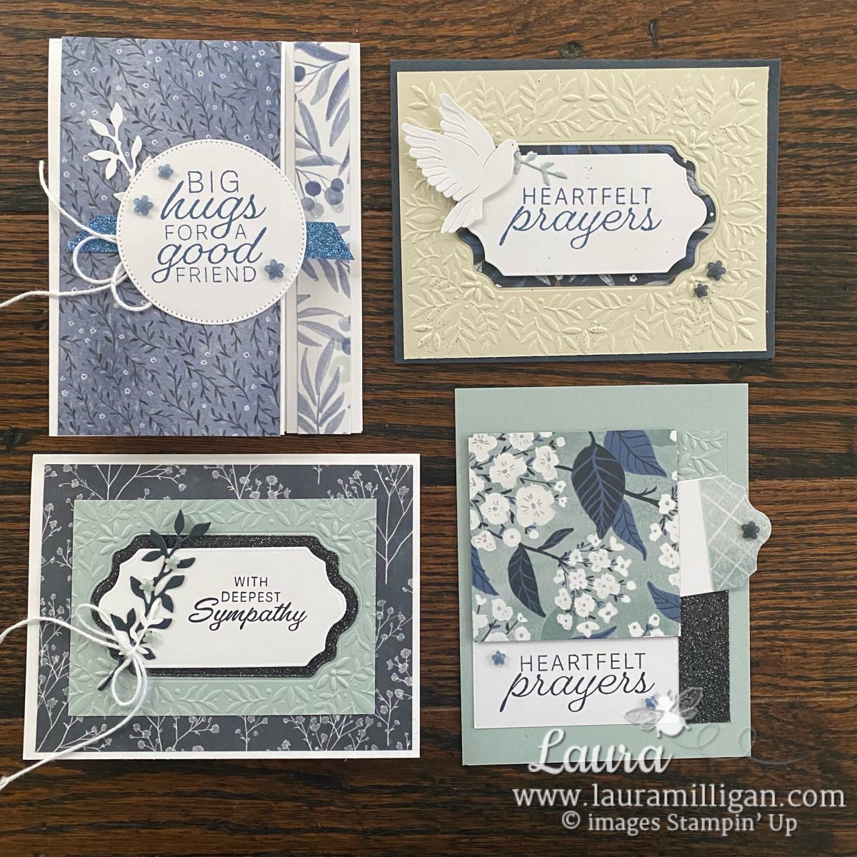 Each of these cards features layered Designer Series Paper, subtle embossed details, and lovely sentiments such as “Big Hugs for a Good Friend” and “Heartfelt Prayers.” They are simple yet elegant—just what you need when words aren’t quite enough.