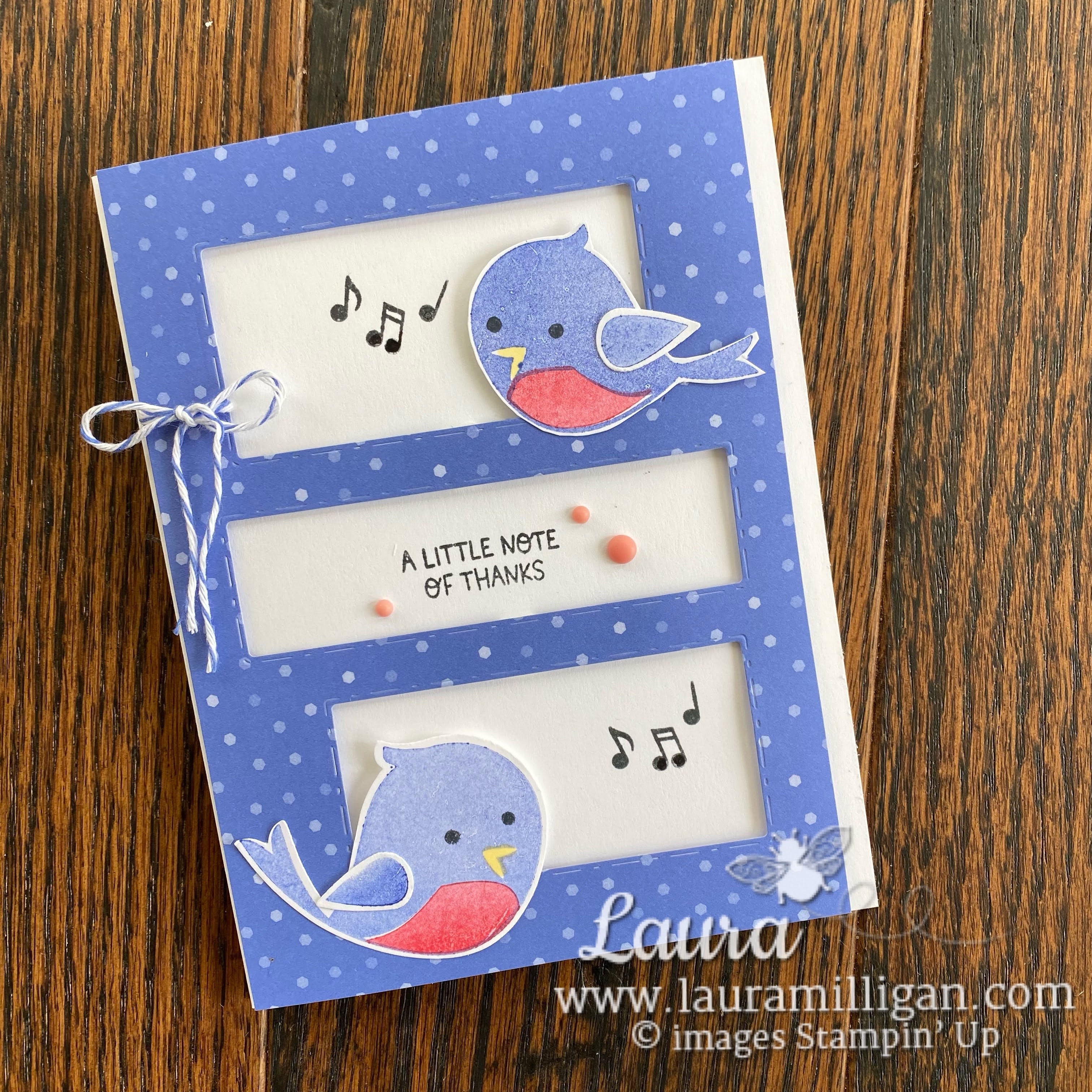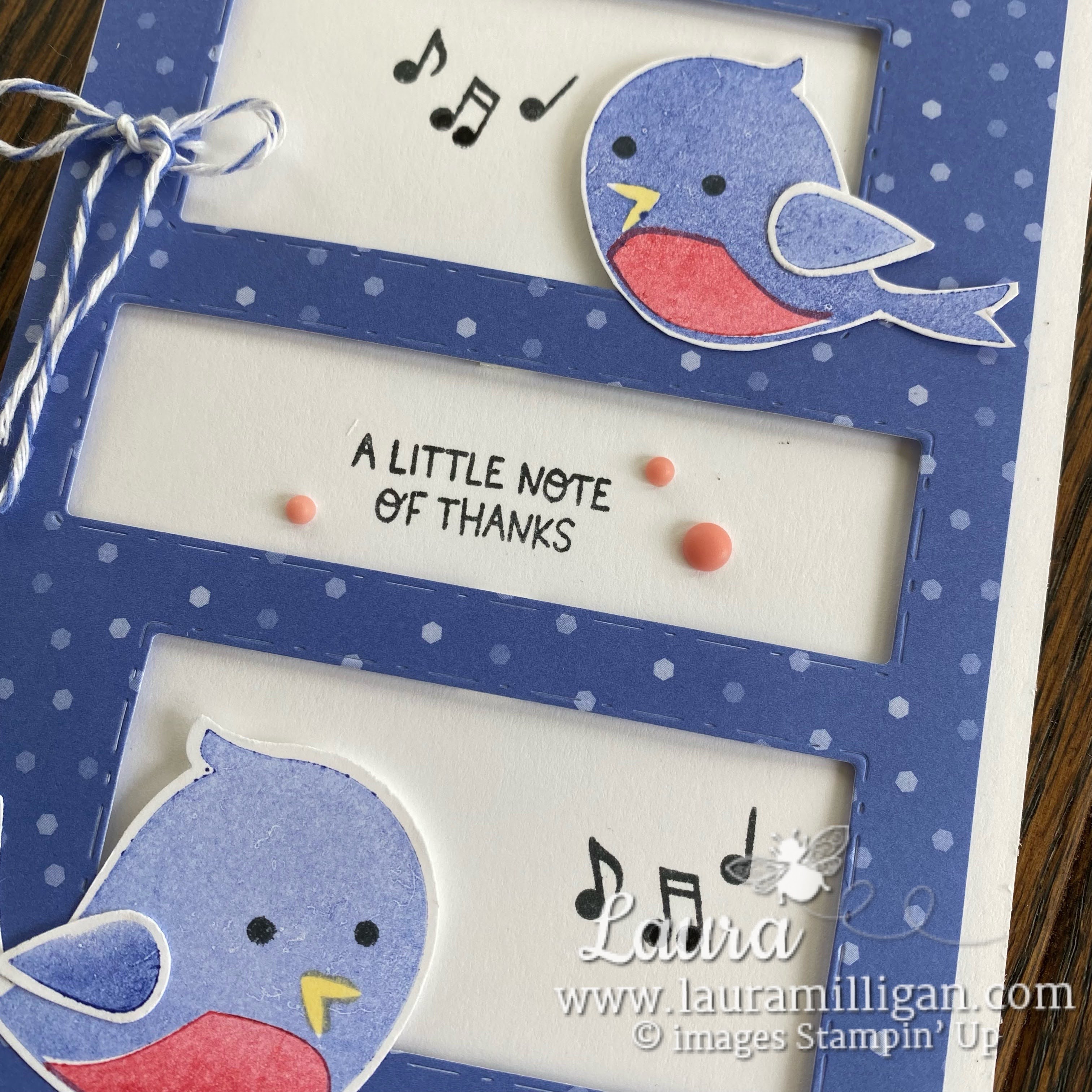 This is a great bundle – it includes a punch for the bird shown on the bottom of my card – and don’t we all love a good punch? The smaller bird on the top of the card was fussy cut, but it wasn’t too bad to do – and the wing is part of the punch.