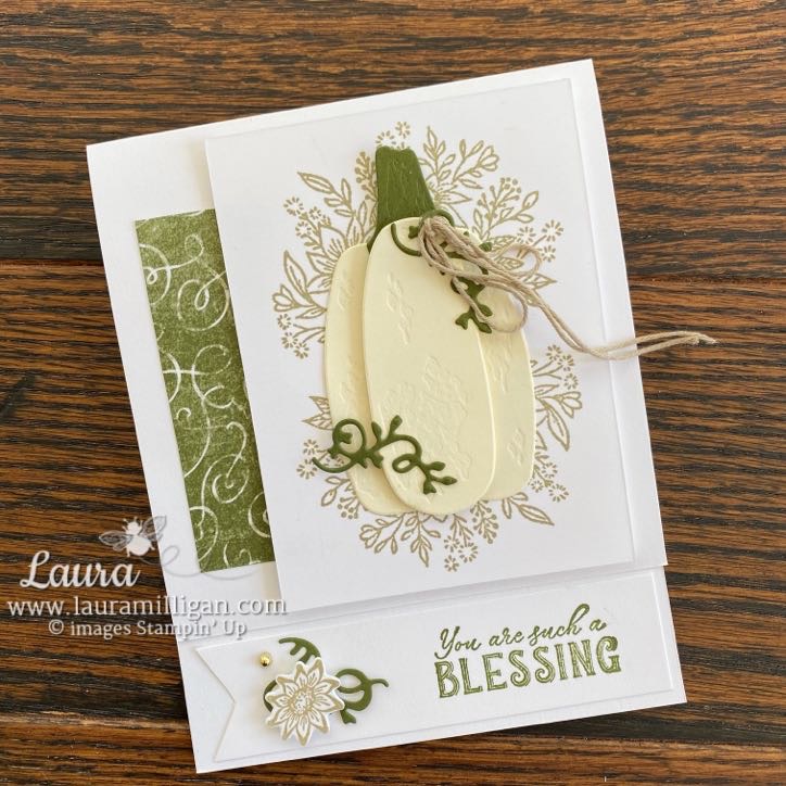 For my Facebook Live yesterday, I used the Hello Harvest Bundle from Stampin’ Up! I love fall and pumpkins and for me, the off white ones are probably my favorites. You can watch the Replay of my Live here to see how this card comes together: