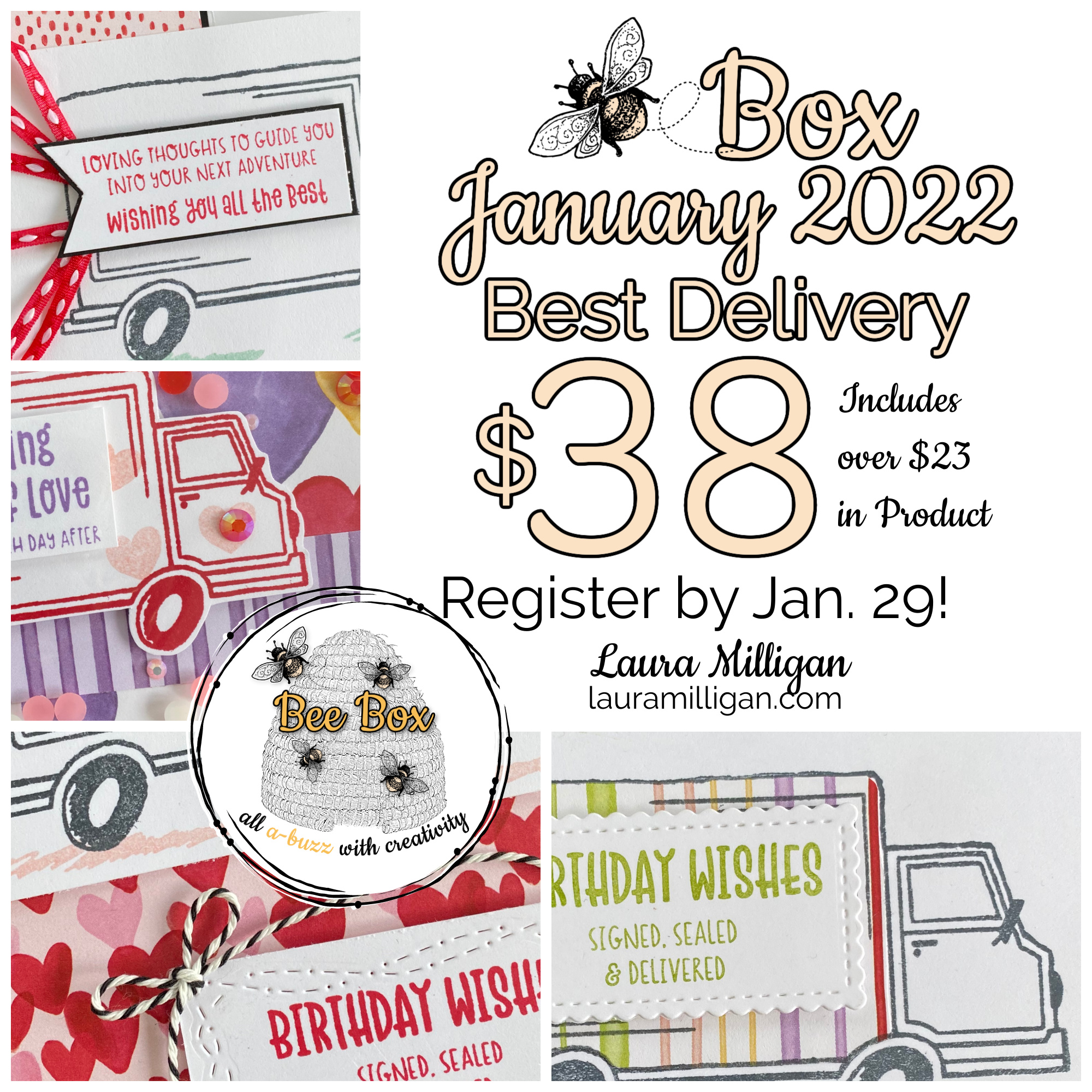 My Bee Box for January features the fun, new Best Delivery Stamp Set! Who knew we all “needed” a stamp set featuring a truck!