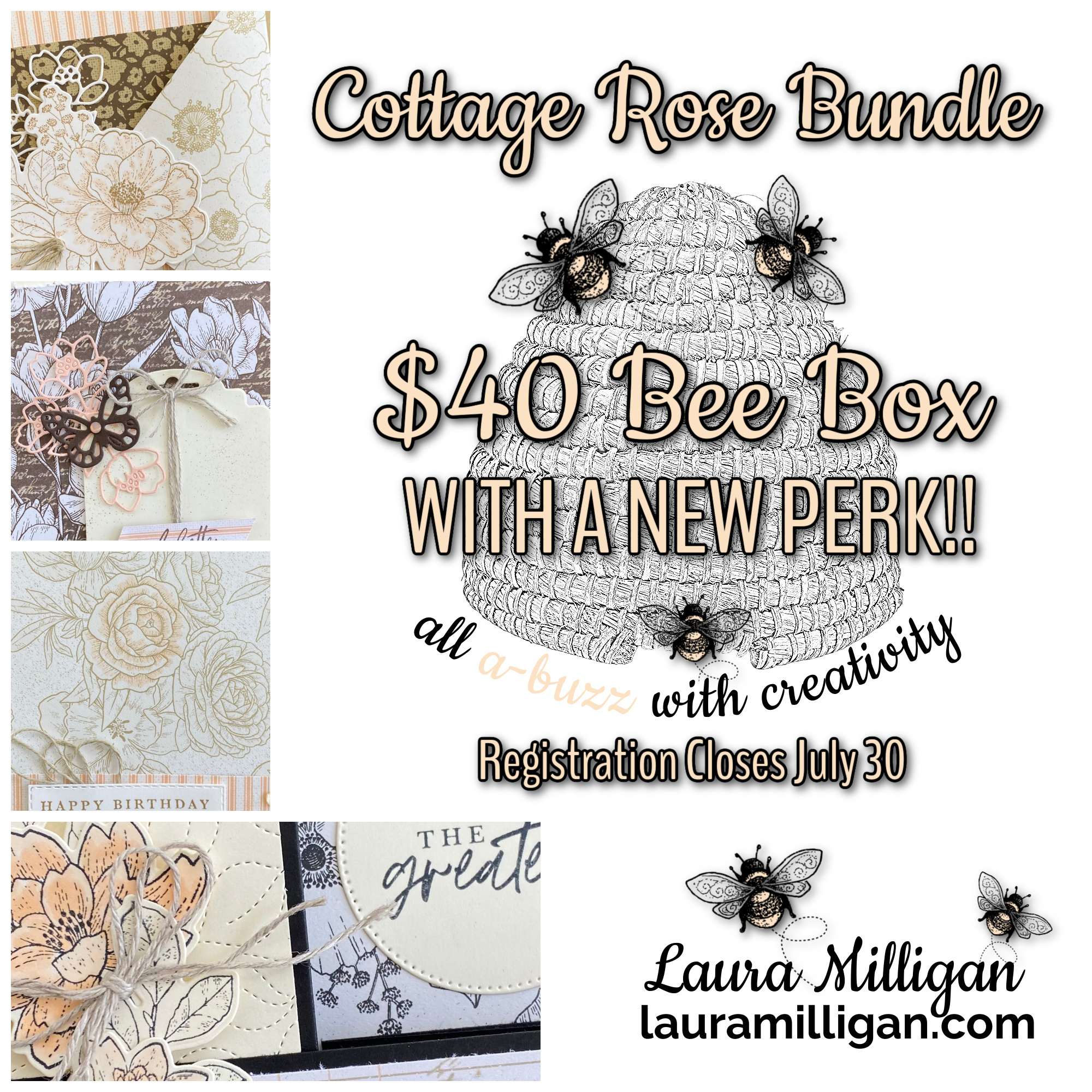 I am SOOOOO excited to introduce July’s Bee Box featuring the beautiful Abigail Rose Suite and Cottage Rose Bundle.