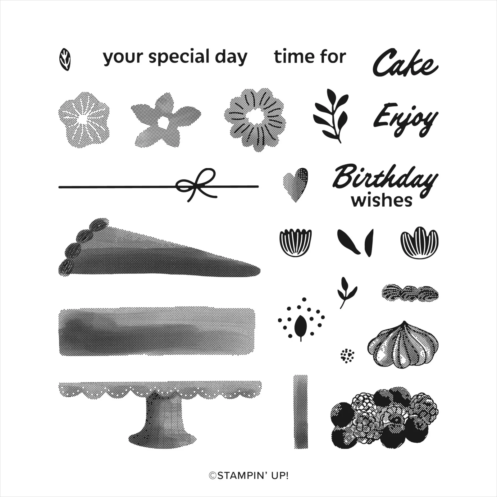 Here’s a look at the Cake Fancy Stamp Set: