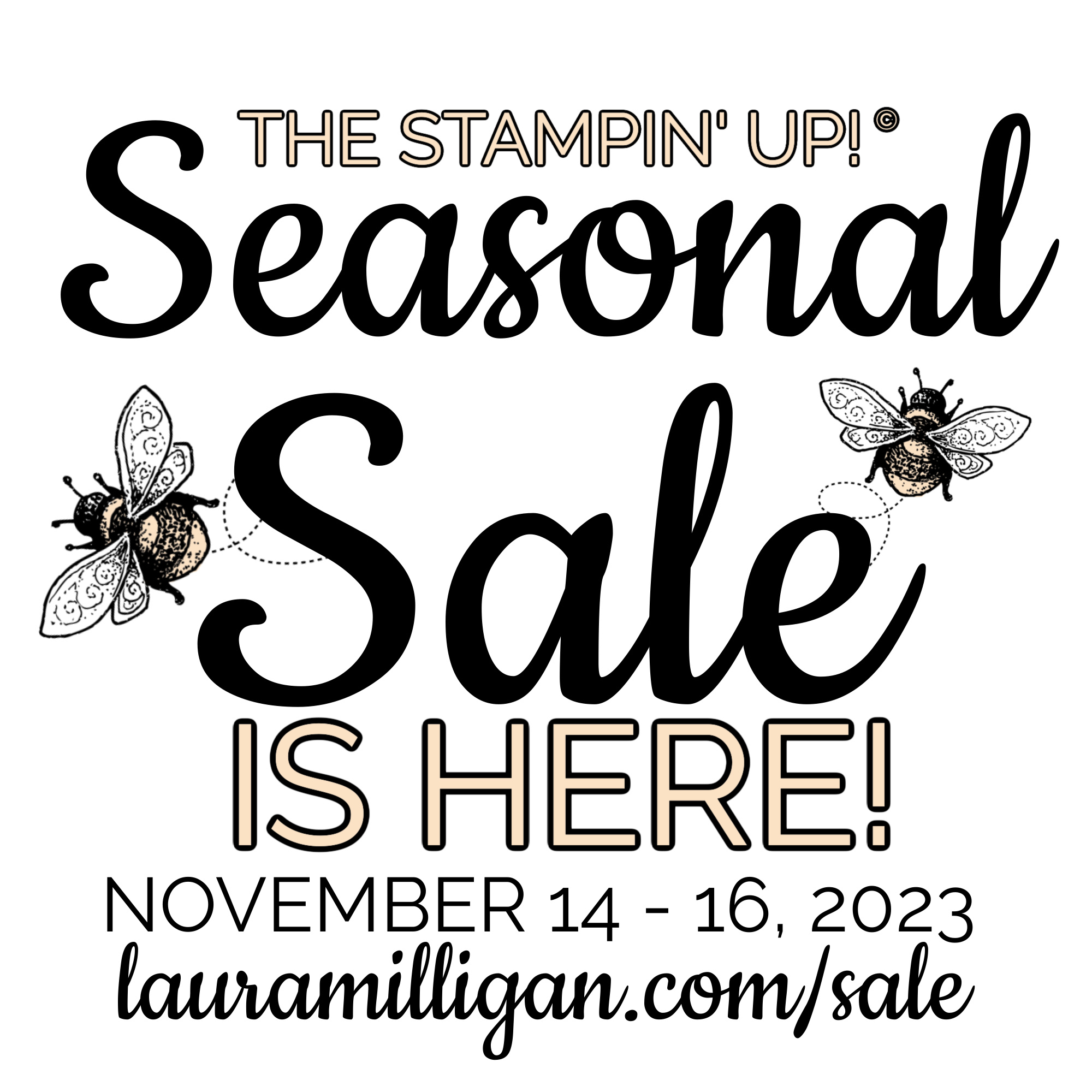 STAMPIN’ UP! SEASONAL SALE IS HERE! Nov. 14 – 16 stock up and save on paper crafting essentials including card stock, designer series and specialty paper, envelopes, gift packaging, ink and ribbon from the 2023-2024 ANNUAL CATALOG!